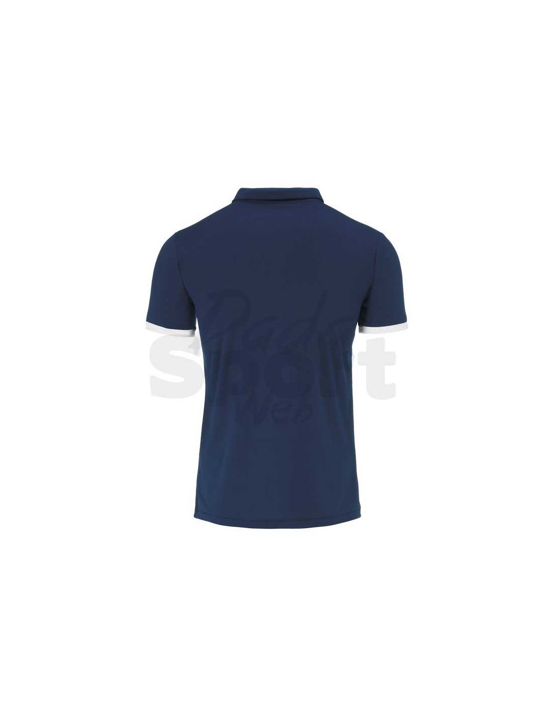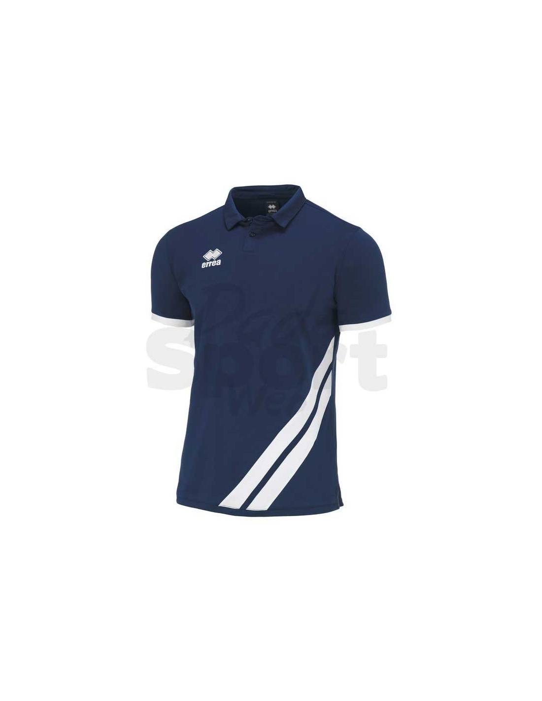 Maglia Polo Errea John, una polo con manica a giro e polsi, con collo a camicia e bottoni, la particolarità di Polo Errea modello John è la grafica obliqua con applicazione in tessuto, è dotata di spacchetti laterali.