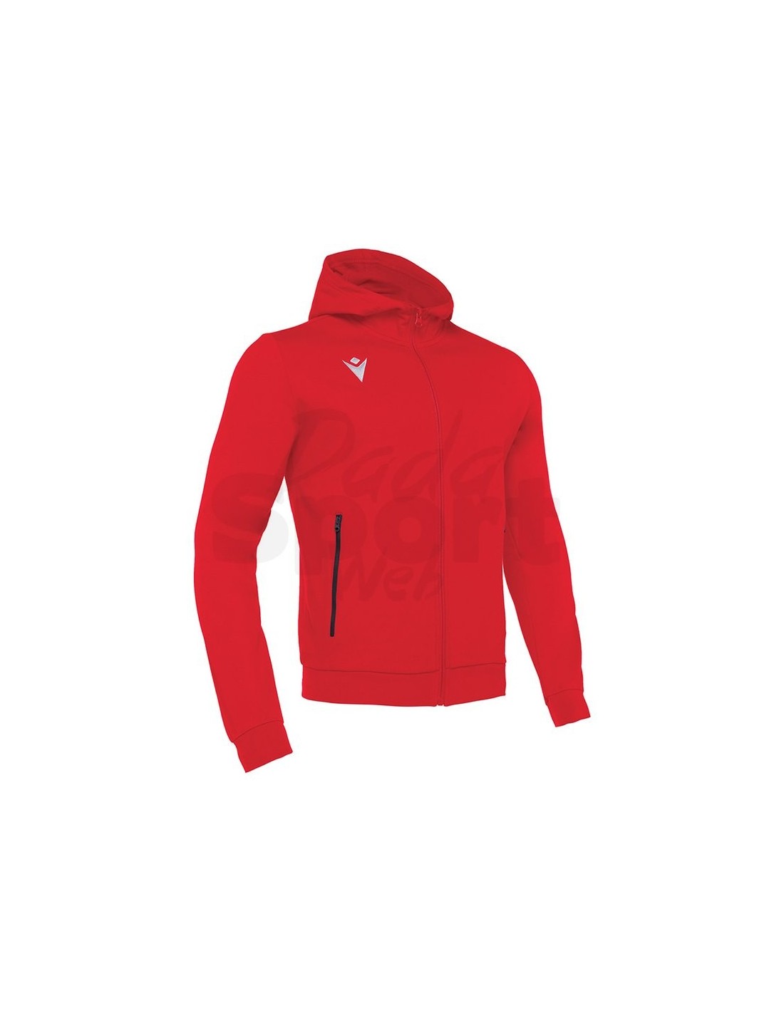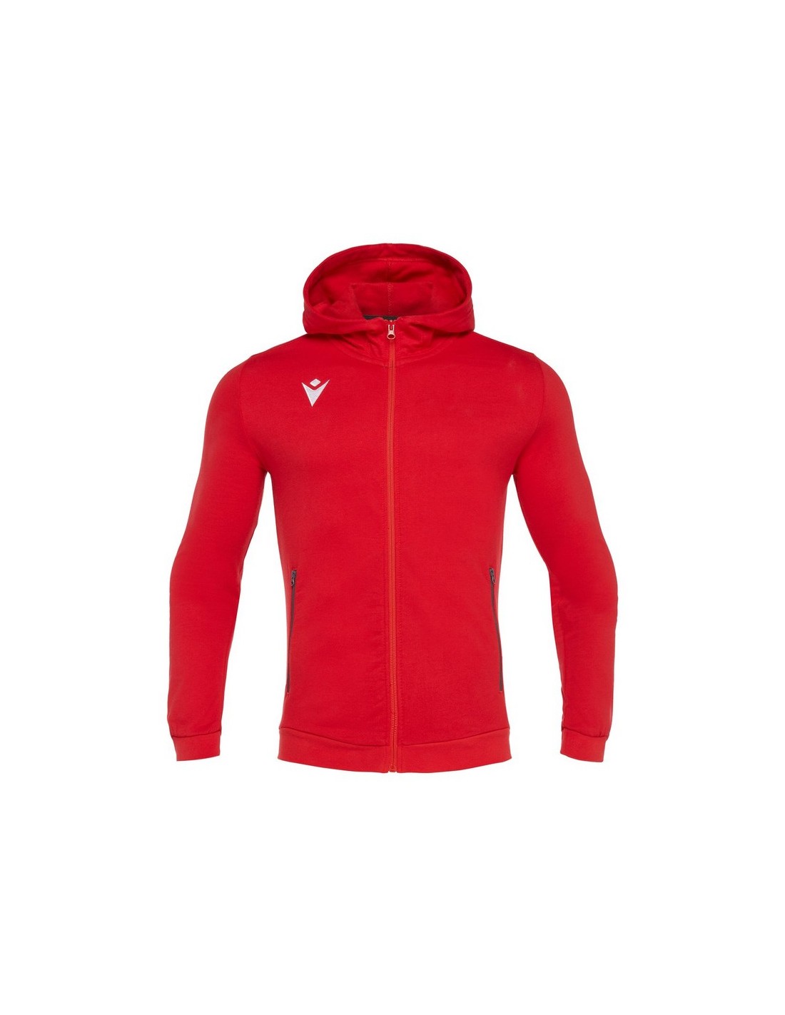 CELLO è la felpa Macron con cappuccio sfoderato, zip intera rovesciata, due tasche con zip rovesciata in contrasto, polsi e fascione in costina, realizzata in morbido cotone felpato.