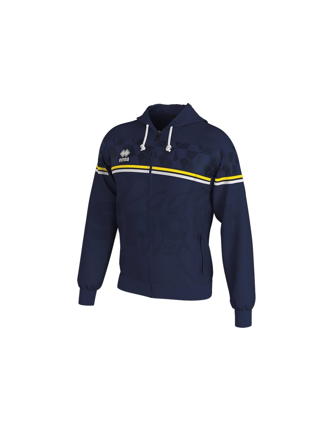 La felpa Errea DRAGOS è full zip e cappuccio regolabile con laccioli, inserti in transfer a righe colorate all'altezza del petto, tasche laterali con cerniera, fondo maglia e polsini in costina elasticizzata, realizzata in morbido cotone e poliestere. Questi due tessuti la rendono calda e allo stesso tempo traspirante. Un tessuto leggermente elasticizzato che aderisce perfettamente al corpo senza rinunciare alla libertà di movimento.