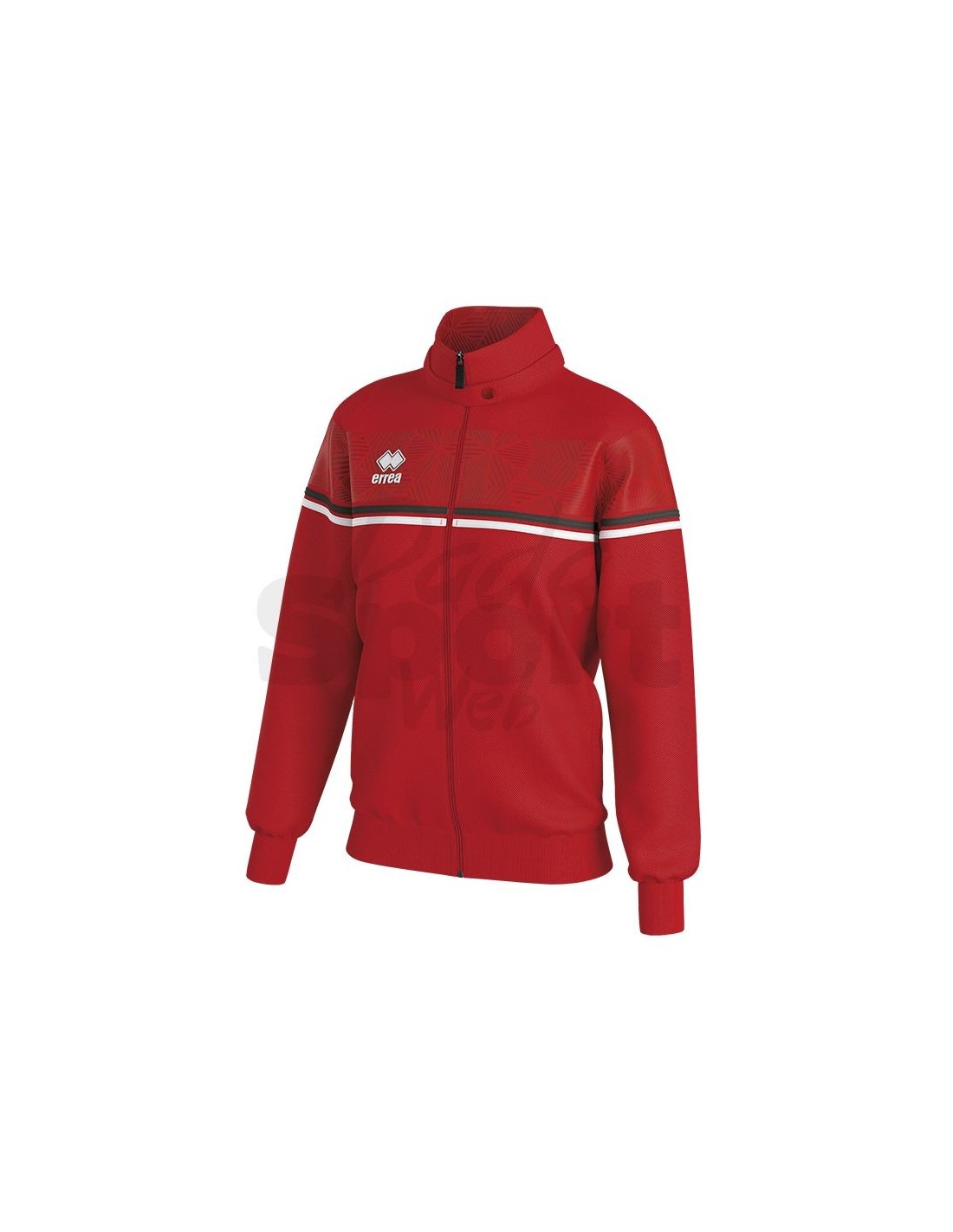 La giacca Diana è inclusa nella nuova linea Errea Diamantis, un design unico grazie agli inserti orizzontali in trasfer, logo ricamato sul petto, cerniera full zip con chiusura sul collo con bottone, polsini e fascione in costina elasticizzata, tasche laterali con cerniera.