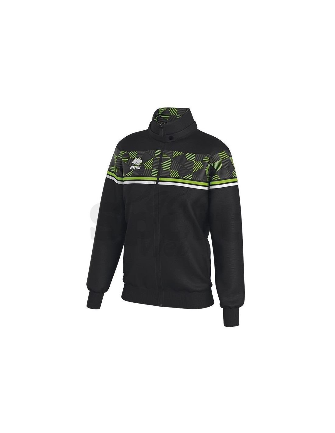 La giacca Diana è inclusa nella nuova linea Errea Diamantis, un design unico grazie agli inserti orizzontali in trasfer, logo ricamato sul petto, cerniera full zip con chiusura sul collo con bottone, polsini e fascione in costina elasticizzata, tasche laterali con cerniera.