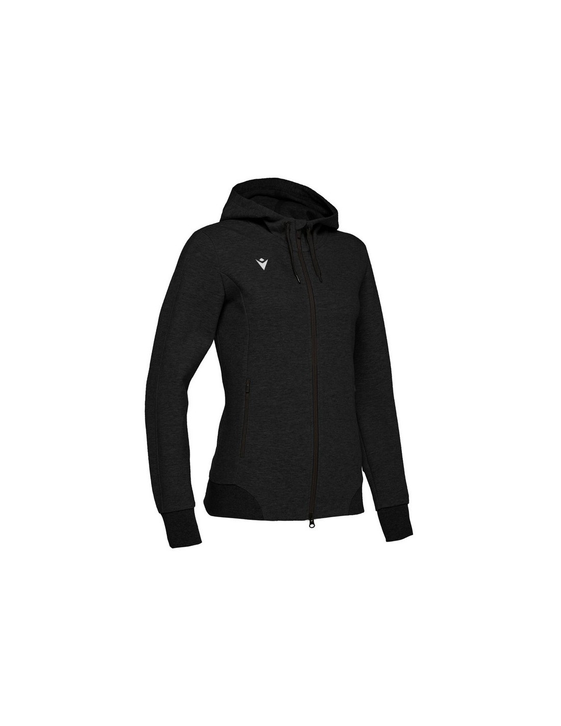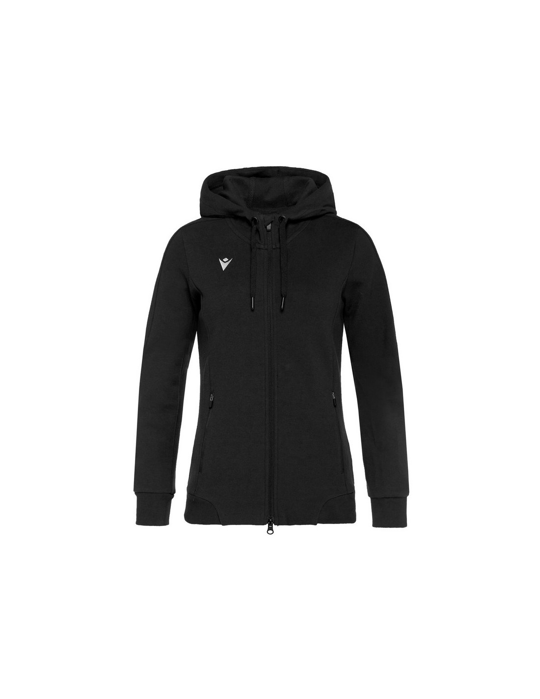 La felpa è infatti dotata di una pratica full zip centrale rovesciata nera con doppio cursore e cursore autobloccante, di cappuccio sfoderato, di tasche, chiuse da zip con cursore autobloccante e di lunetta in jersey nero,polsini in costina e le coulisse piatte con anelli e puntali neri opachi,logo Macron ricamato sul fronte.
