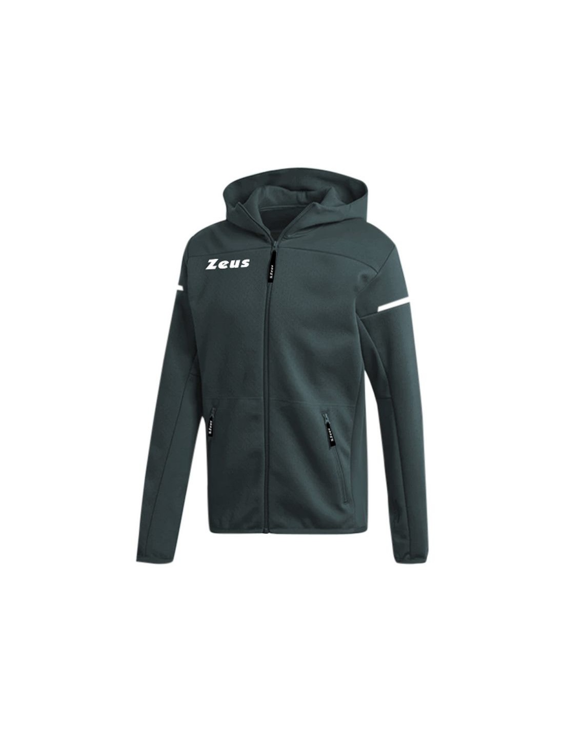 Nuova felpa relax con cappuccio di Zeus realizzata in tessutoBI-ELASTIC fiber, full zip e tasche laterali con chiusura con zip, fondo e polsini in coulisse.