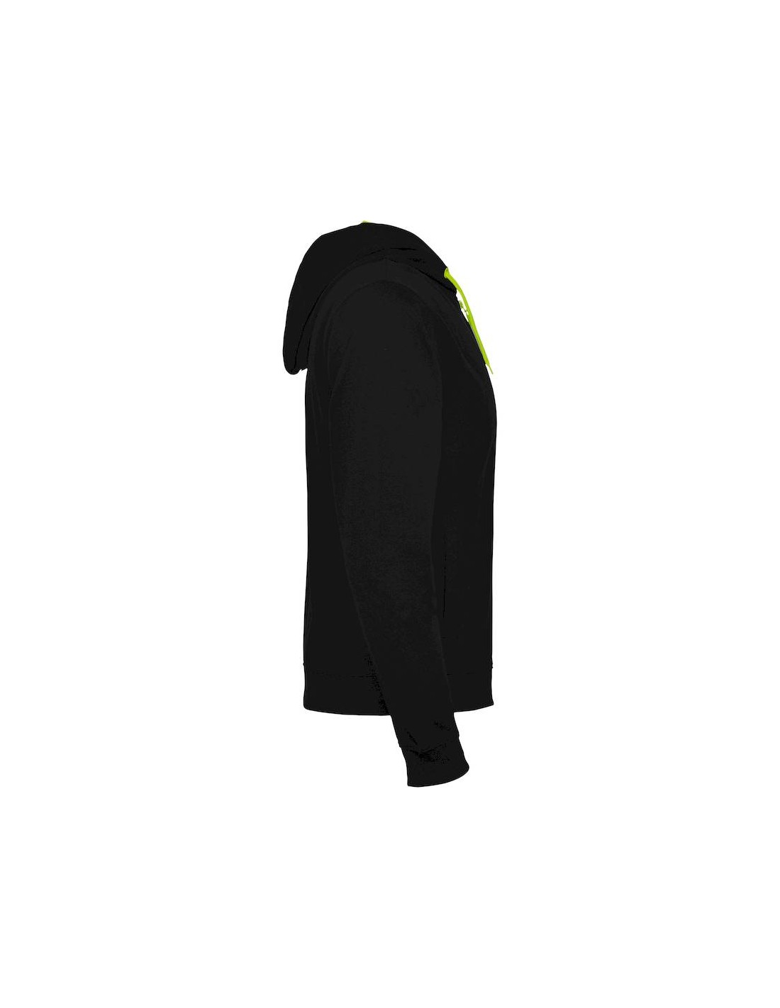 Cappuccio con fodera in tessuto poliestere microforato a contrasto colore fluo, coulisse e occhielli in metallo a contrasto colore fluo.