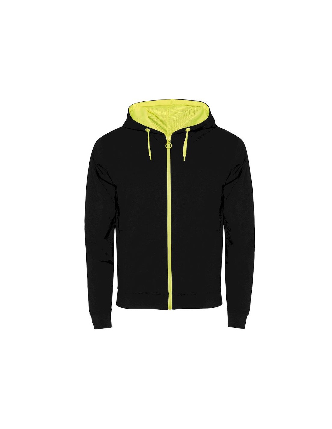 Zip centrale con tiretto ad anello a contrasto in colore fluo.