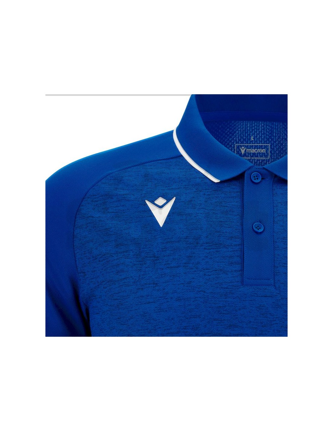 Polo in piquet di poliestere Hidrotex a 2 bottoni con vela in maglieria, è inclusa nella nuova linea sportiva di Macron Total Look Glory