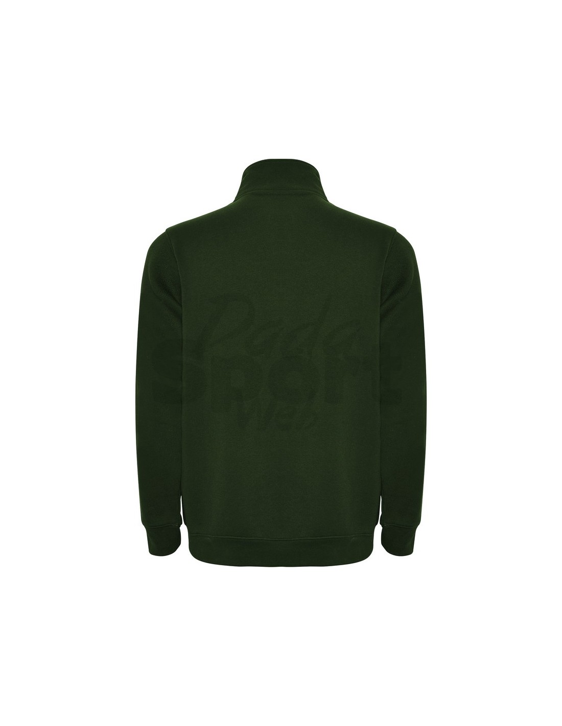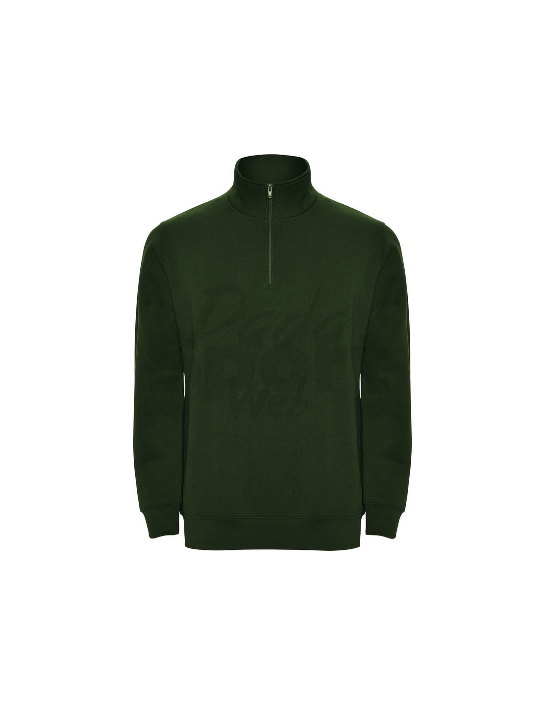 Felpa con mezza cerniera in tinta e collo alto, parte interna del colletto nello stesso colore, copri cuciture rinforzate all'interno del collo, costine 1x1 nei polsini e nel girovita.