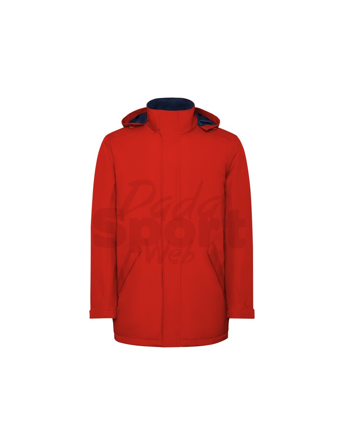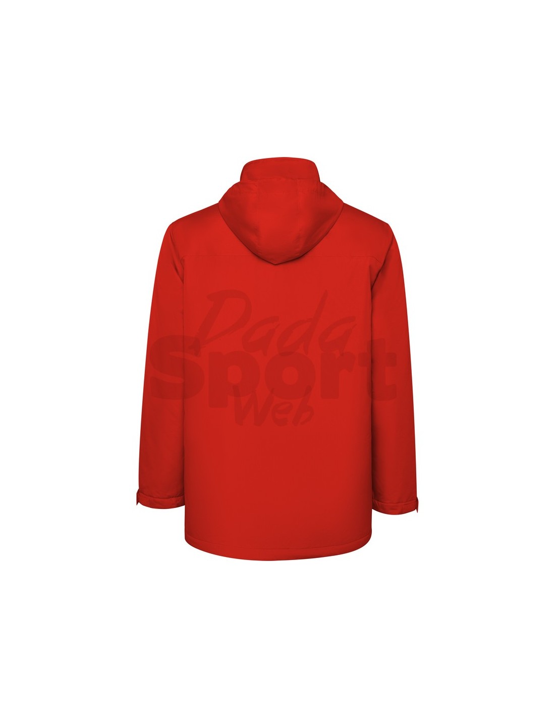 Parka maschile per adulti e bambini, imbottito e impermeabile, collo alto con cappuccio ripiegabile e chiusura a velcro, zip centrale con patta abbinata.