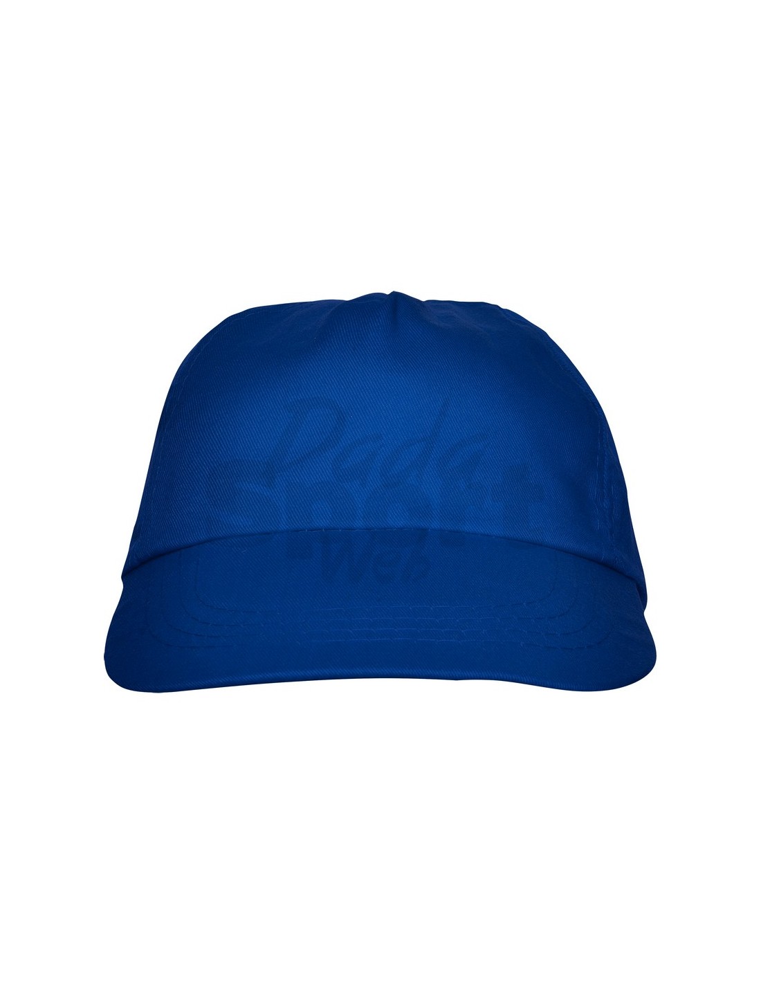 Cappellino 5 pannelli. 2 fori di aerazione ricamati. 4 linee cucite sulla visiera. Fettuccia parasudore interna, chiusura in velcro.