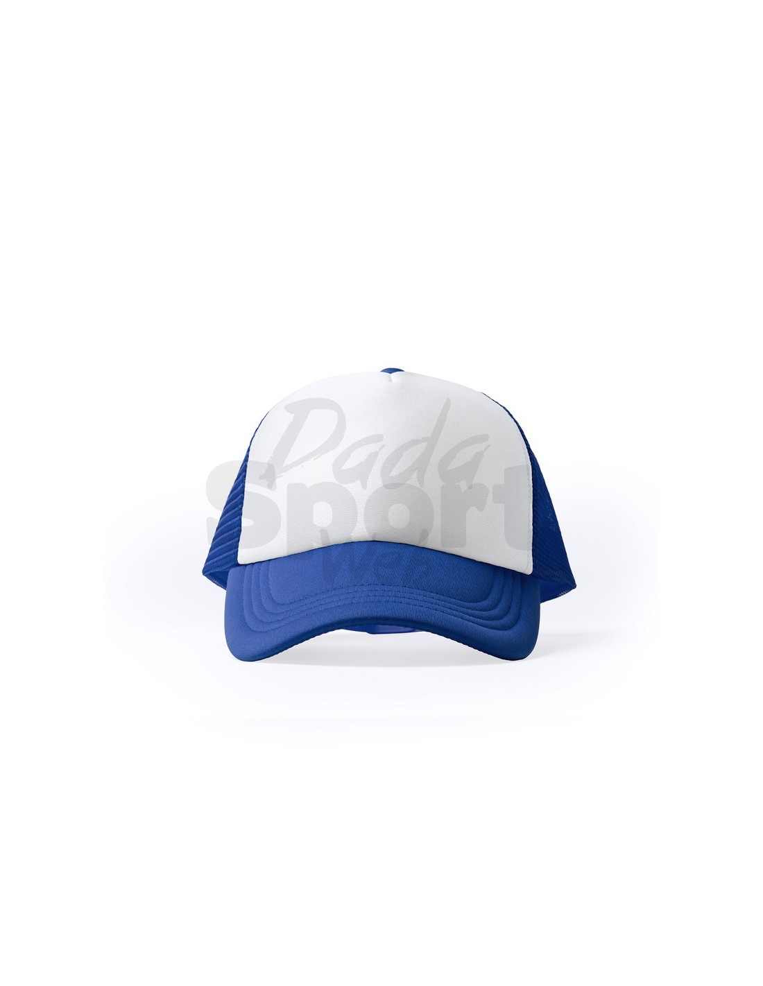 Berretto a 5 sezioni in poliestere con frontalino imbottito di colore bianco, retro a rete e chiusura regolabile.