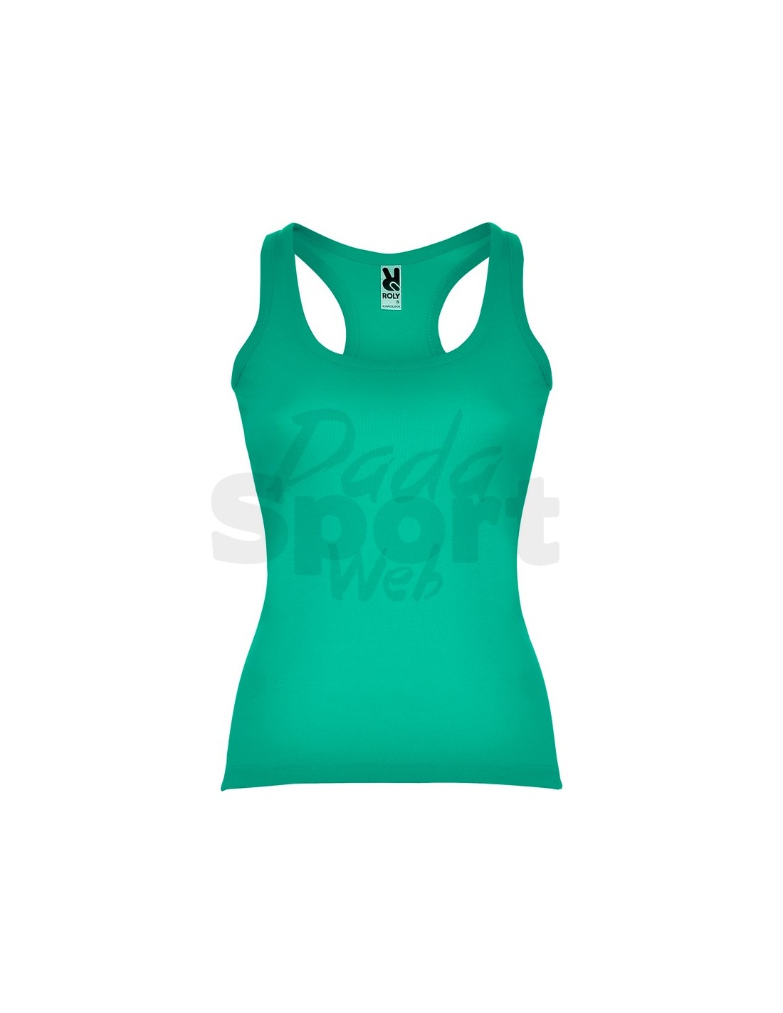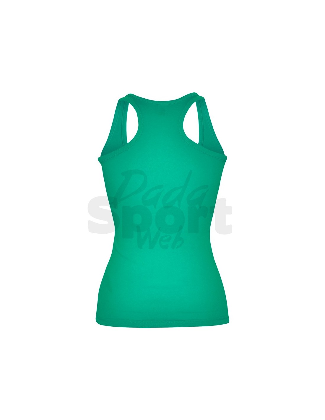 Canotta aderente, giromanica e scollatura orlata, spalline sul retro stile vogatore, cuciture laterali.