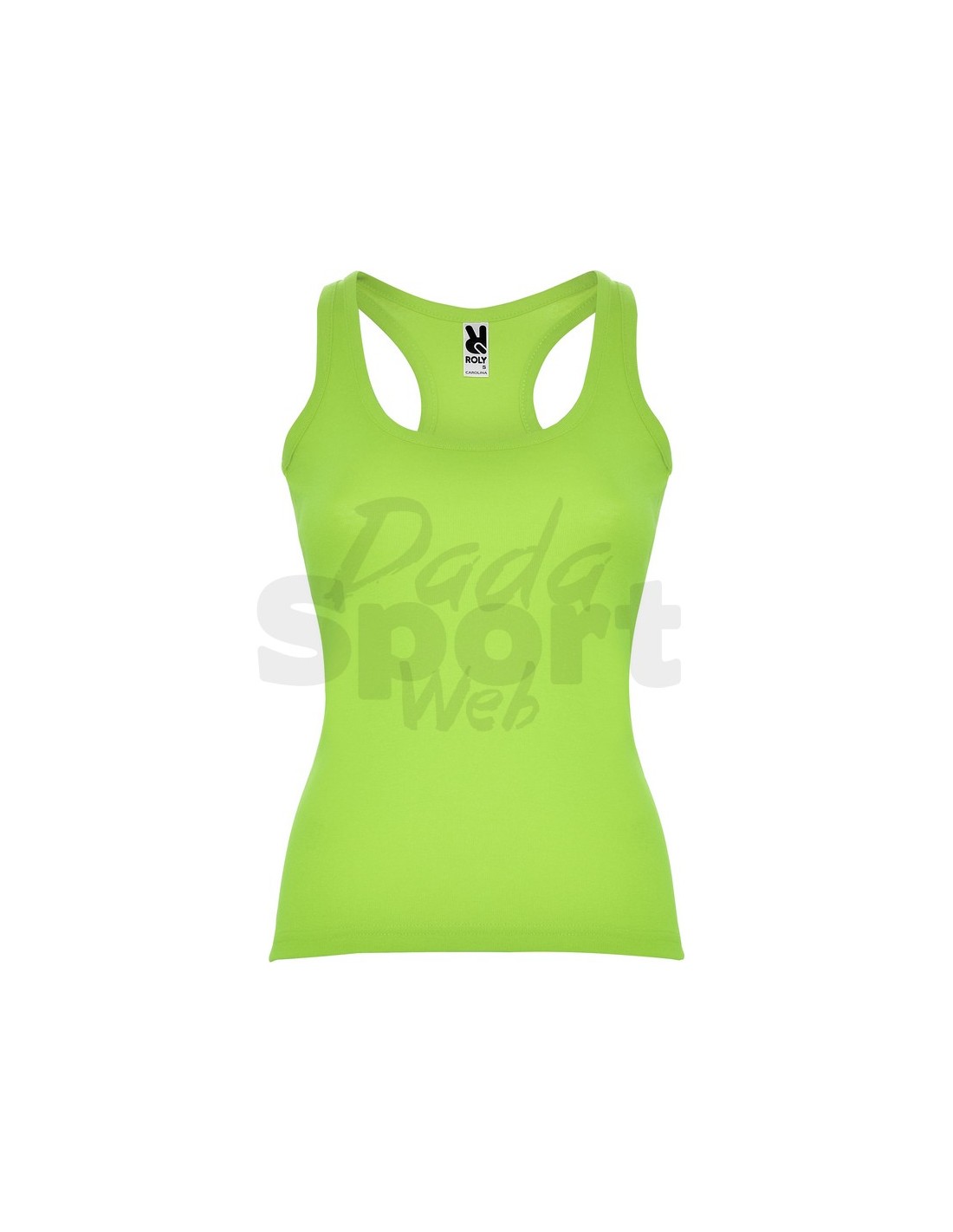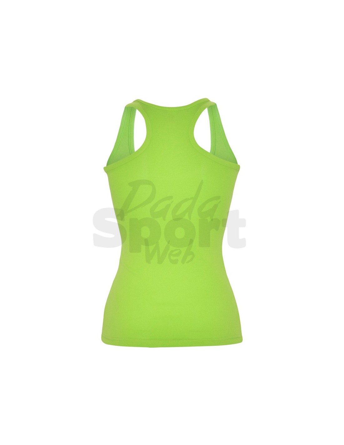 Canotta aderente, giromanica e scollatura orlata, spalline sul retro stile vogatore, cuciture laterali.