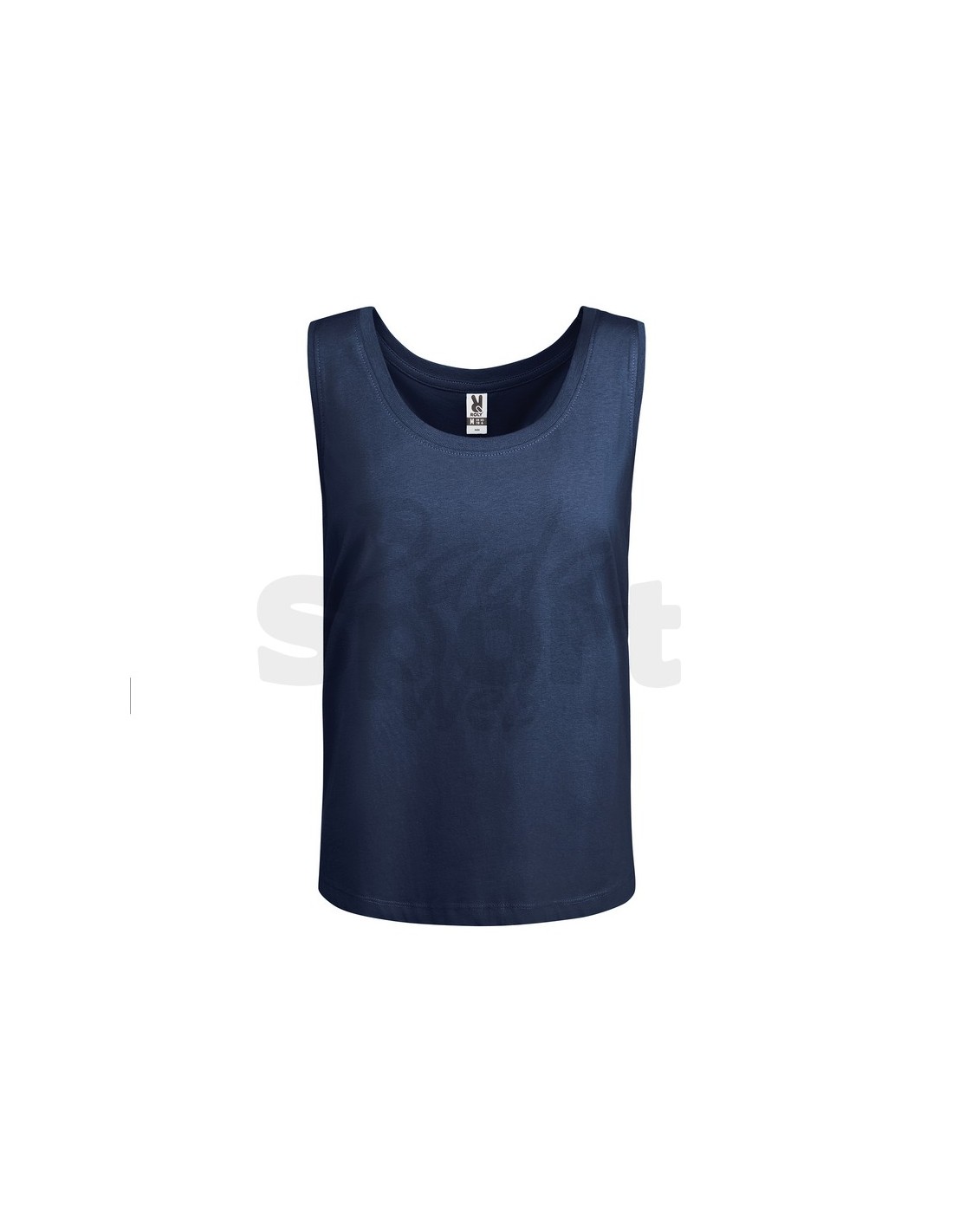 T-shirt da donna con spalline larghe, scollo e giromanica in costina 1x1, orlo arrotondato, cuciture laterali.