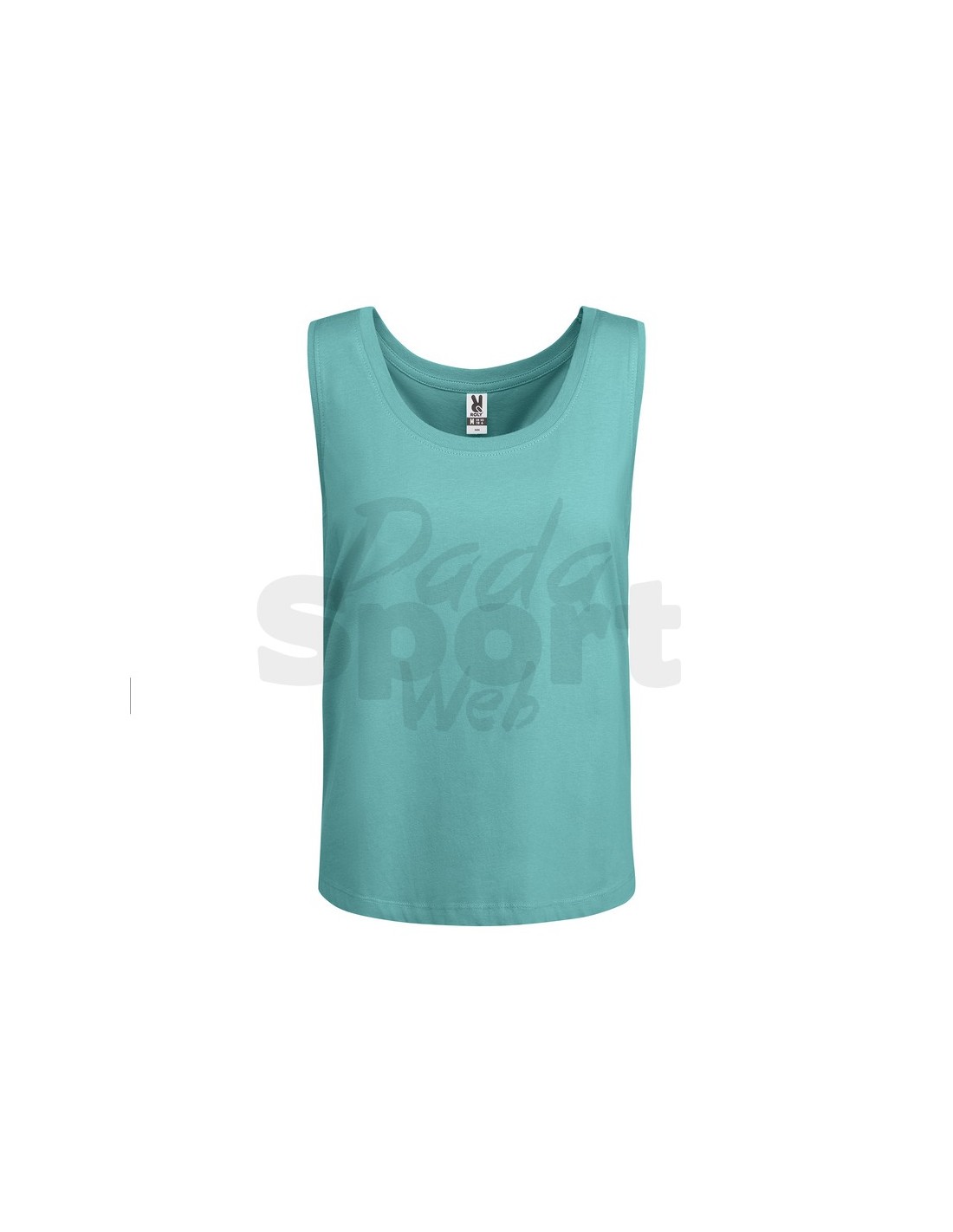 T-shirt da donna con spalline larghe, scollo e giromanica in costina 1x1, orlo arrotondato, cuciture laterali.