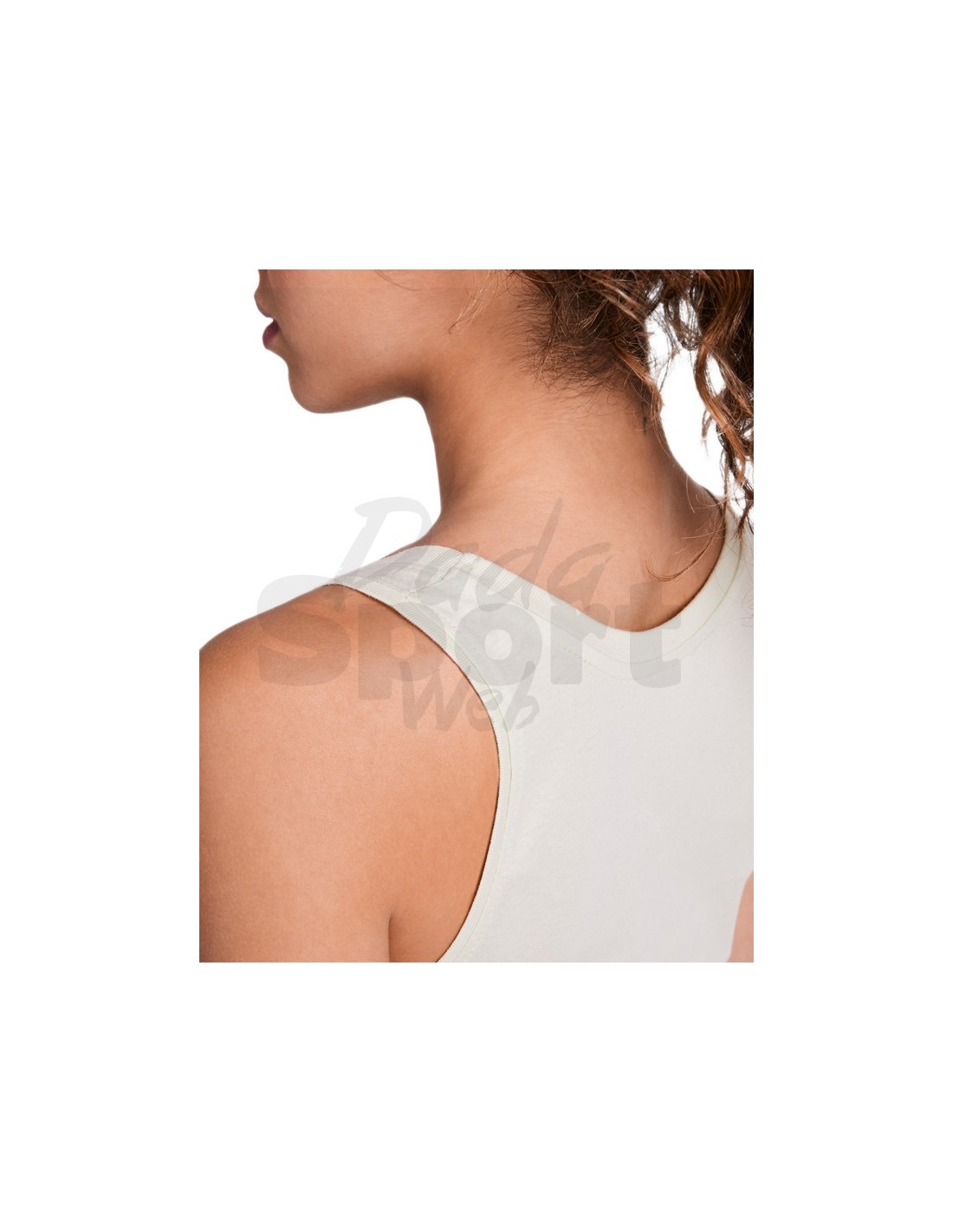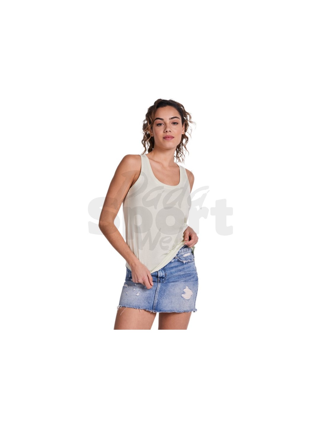 T-shirt da donna con spalline larghe, scollo e giromanica in costina 1x1, orlo arrotondato, cuciture laterali.