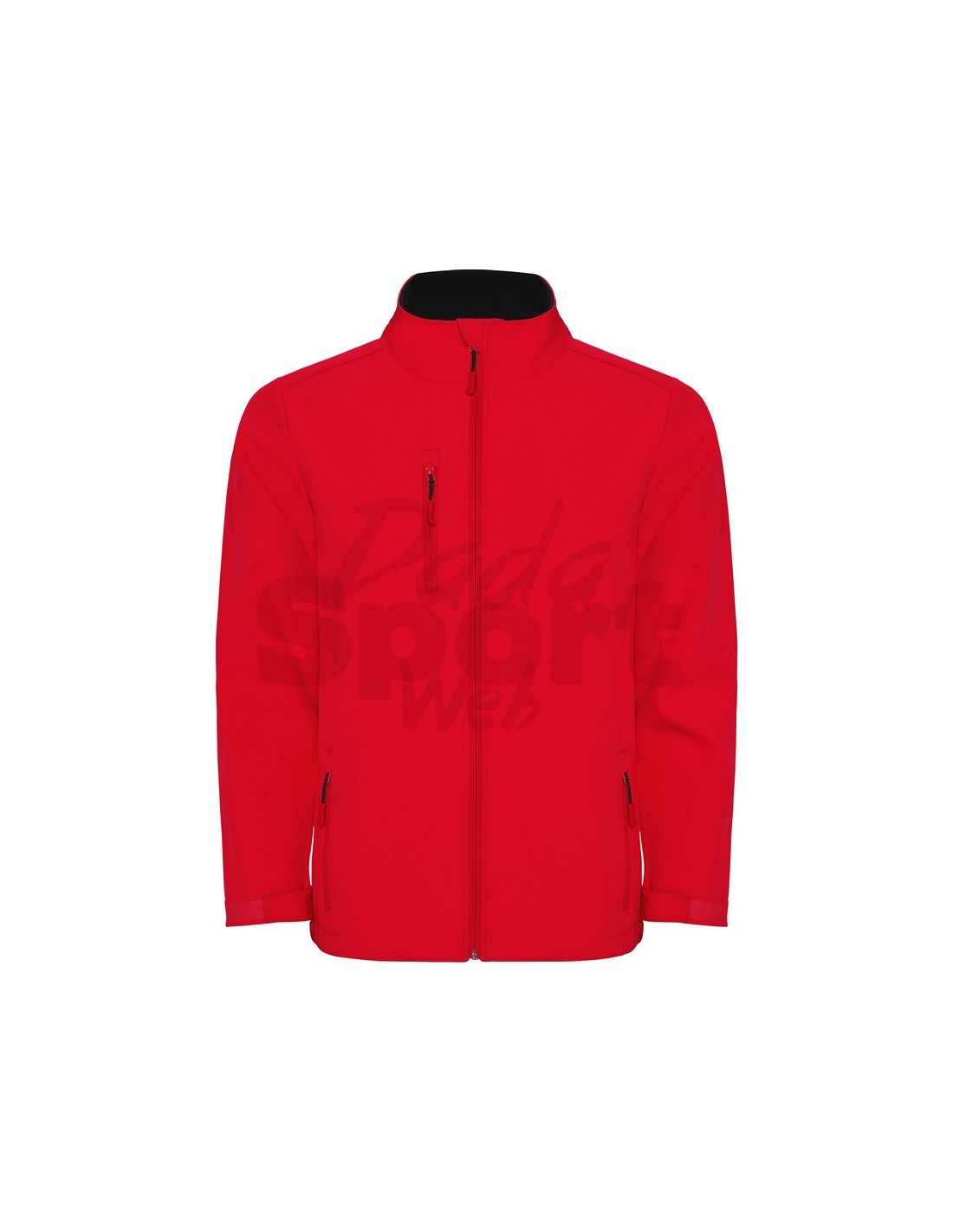 Giubbotto softshell a 2 strati con zip frontale invertita, foderato in tessuto micropile, due tasche laterali e una tasca sul petto a destra con cerniere invertite, protezione per il mento in tessuto uguale sul rovescio, regolatori laterali interni in taglie da adulto.