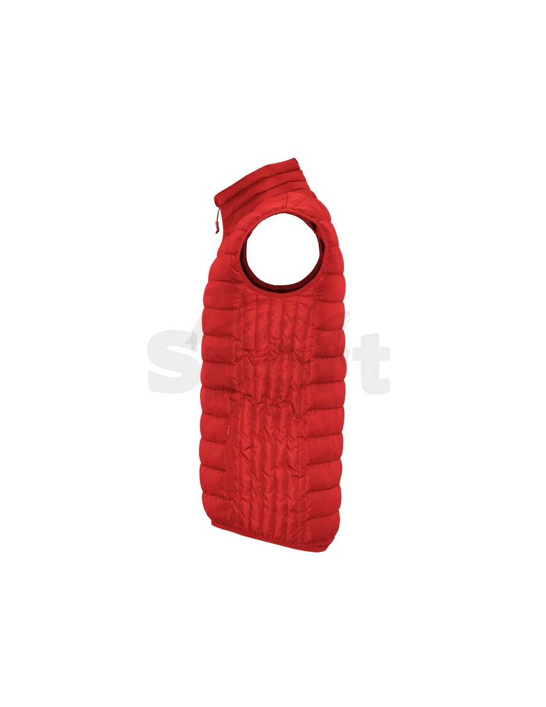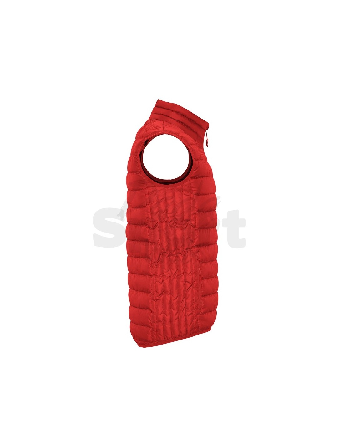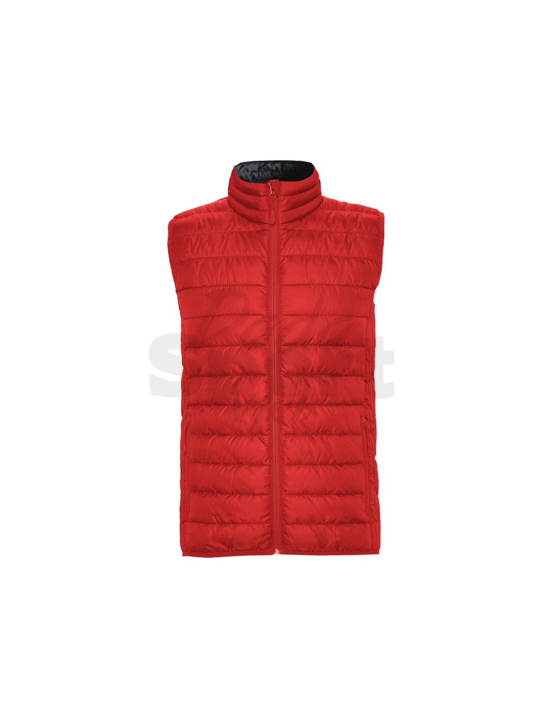 Gilet imbottito idrorepellente, zip frontale invertita tono su tono con protezione per il mento in tessuto uguale, tasche laterali con zip tono su tono inserite nei pannelli laterali, piping elastico invertito tono su tono su giromanica e orlo.