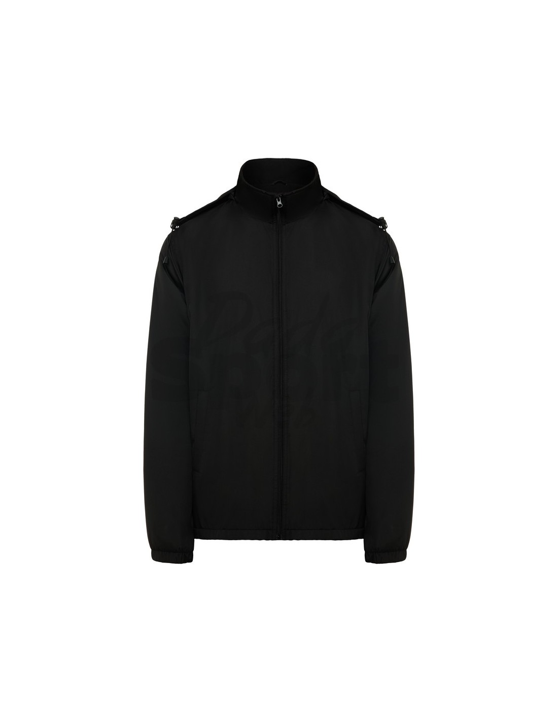 Giubbotto leggero idrorepellente con cerniera frontale. Protezione per il mento, cappuccio removibile con zip e regolatori elastici, polsini gommati, tasche laterali con zip e rifinite in tessuto uguale, tasca interna sul petto a sinistra.