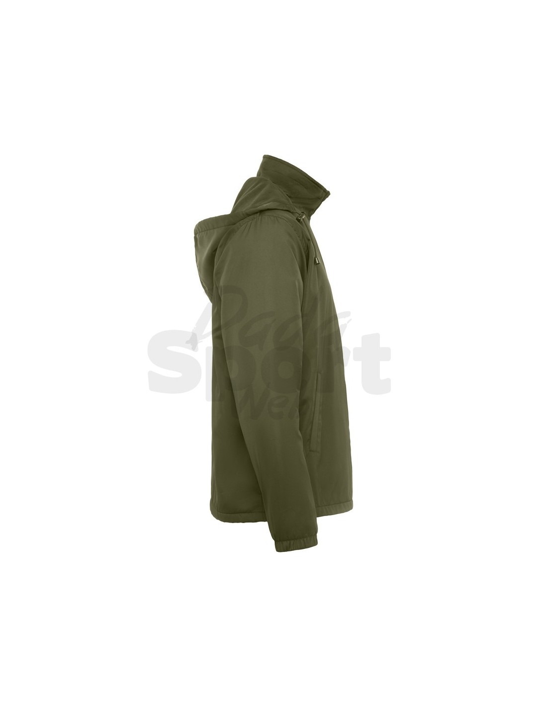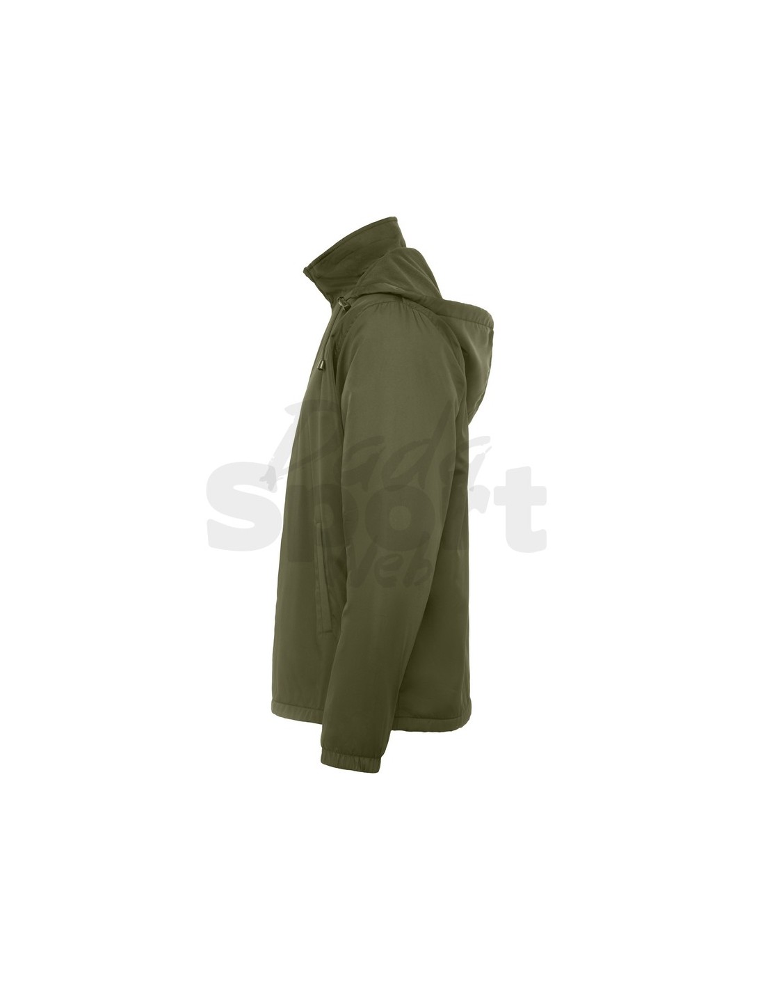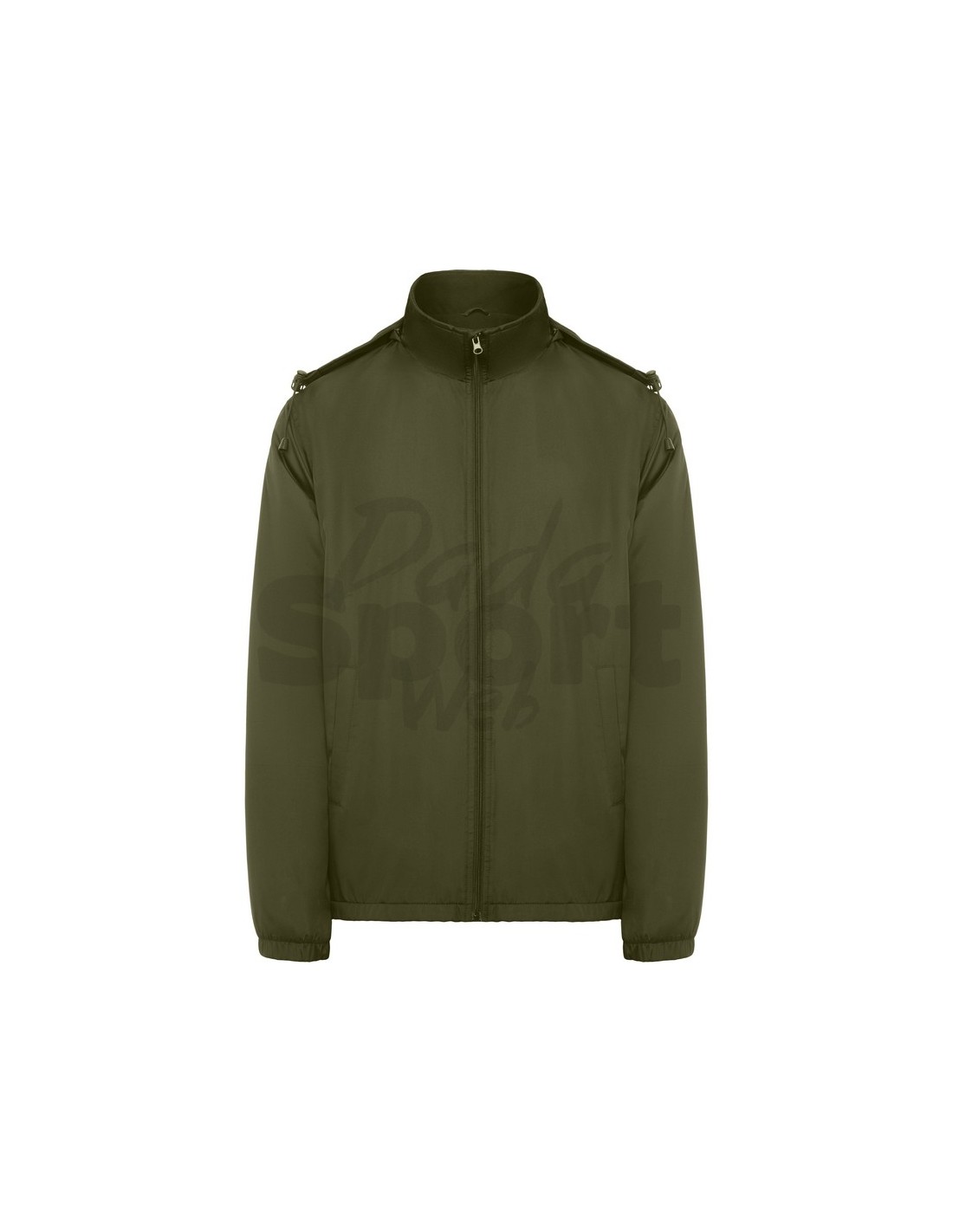 Giubbotto leggero idrorepellente con cerniera frontale. Protezione per il mento, cappuccio removibile con zip e regolatori elastici, polsini gommati, tasche laterali con zip e rifinite in tessuto uguale, tasca interna sul petto a sinistra.