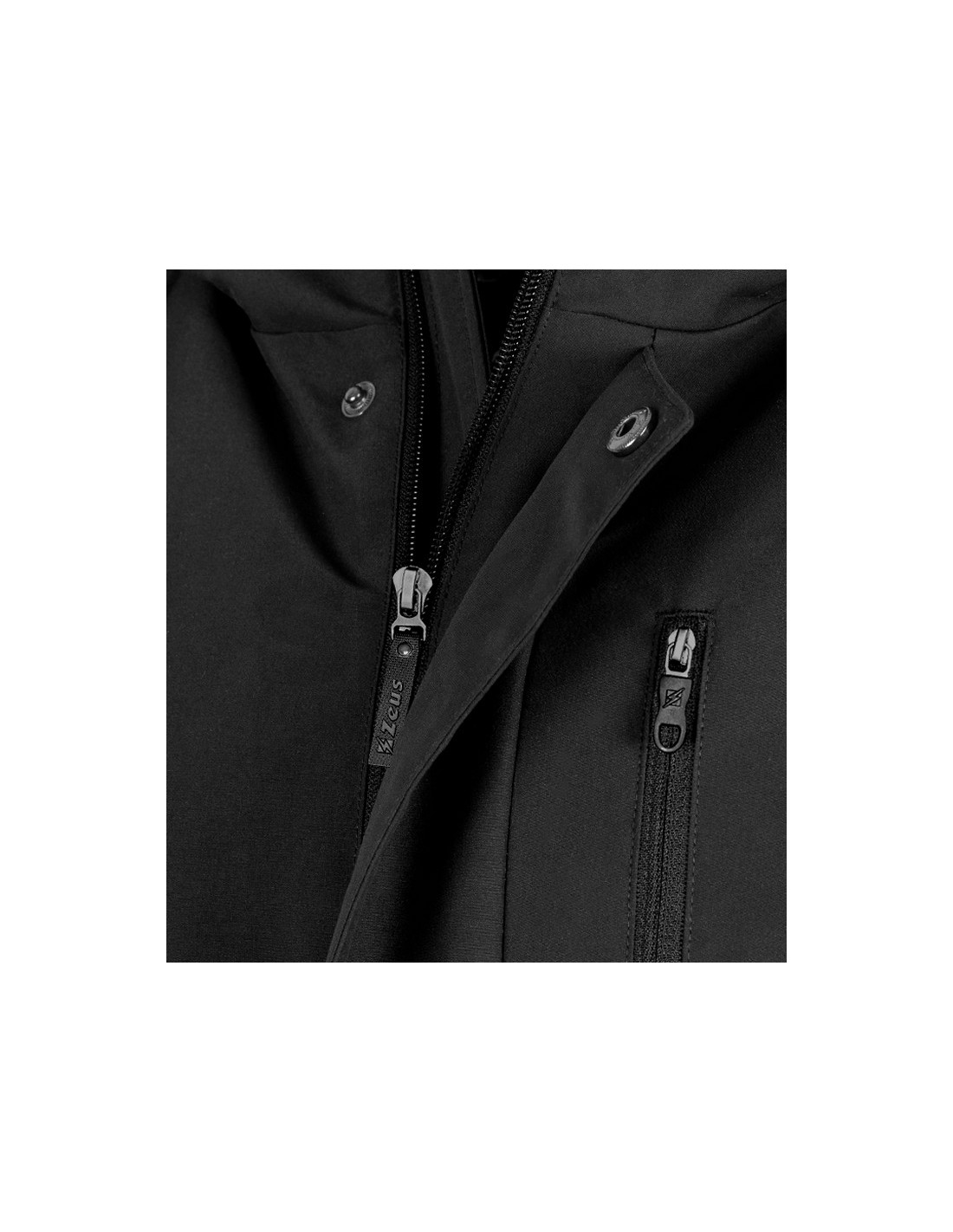 Giubbotto con cappuccio, tasche laterali e una frontale con zip (all’interno è presente un'ulteriore tasca). Questa giacca ha chiusura centrale dotata di cerniera e bottoni, logo Zeus in rilievo, maniche in costina con passante per il pollice.