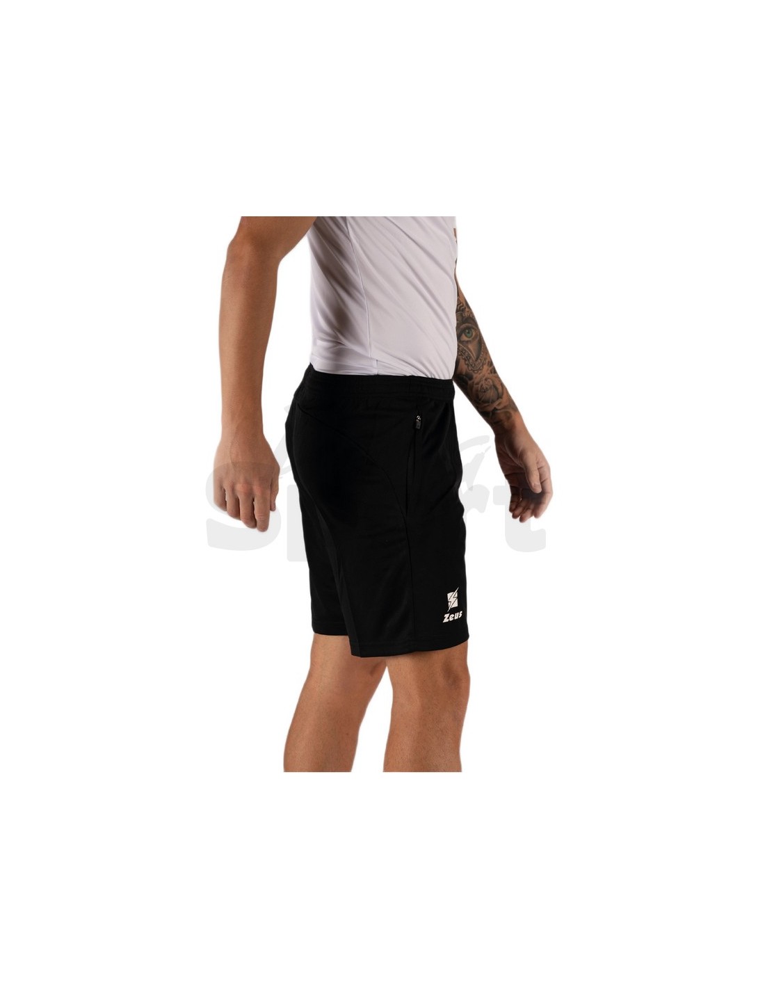 Pantalone corto sportivo e tecnico particolarmente indicato per gli allenamenti, realizzato in poliestere con inserti in mesh su retro e laterale, tasche con zip.