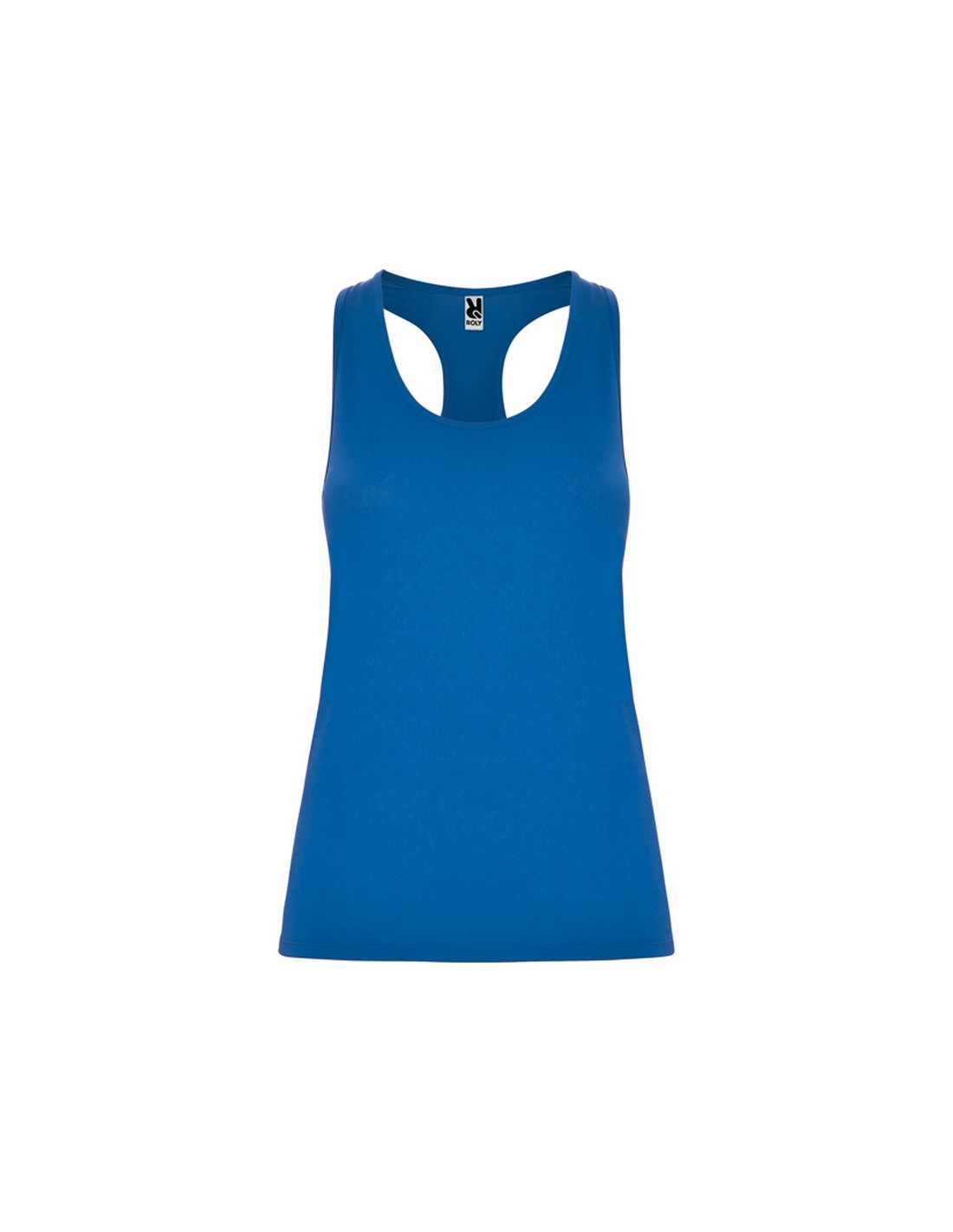 Canotta sportiva con spalline incrociate. Tessuto poliestere tatto cotone. Tessuto adattabile al corpo. Taglio aderente.