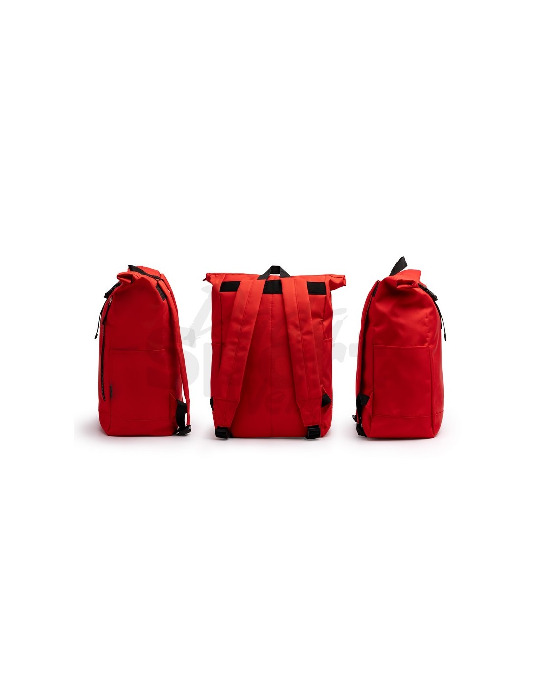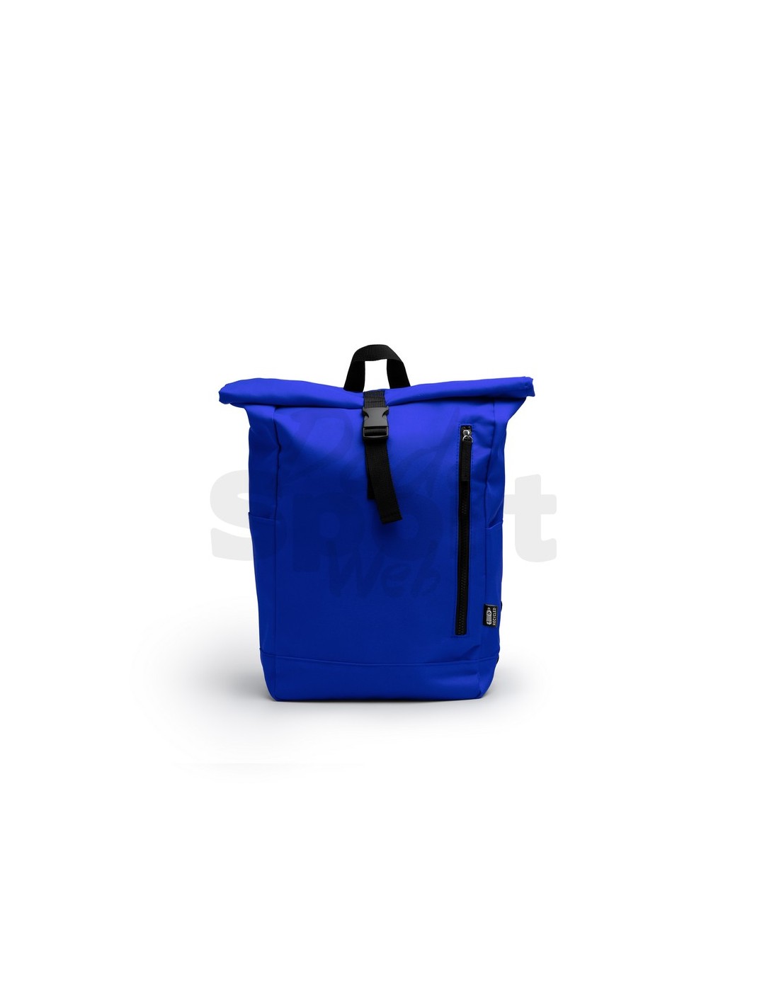 Zaino in poliestere RPET, scomparto principale spazioso con apertura estensibile, tasca esterna con cerniera e due tasche laterali, spallacci e schienale imbottiti.