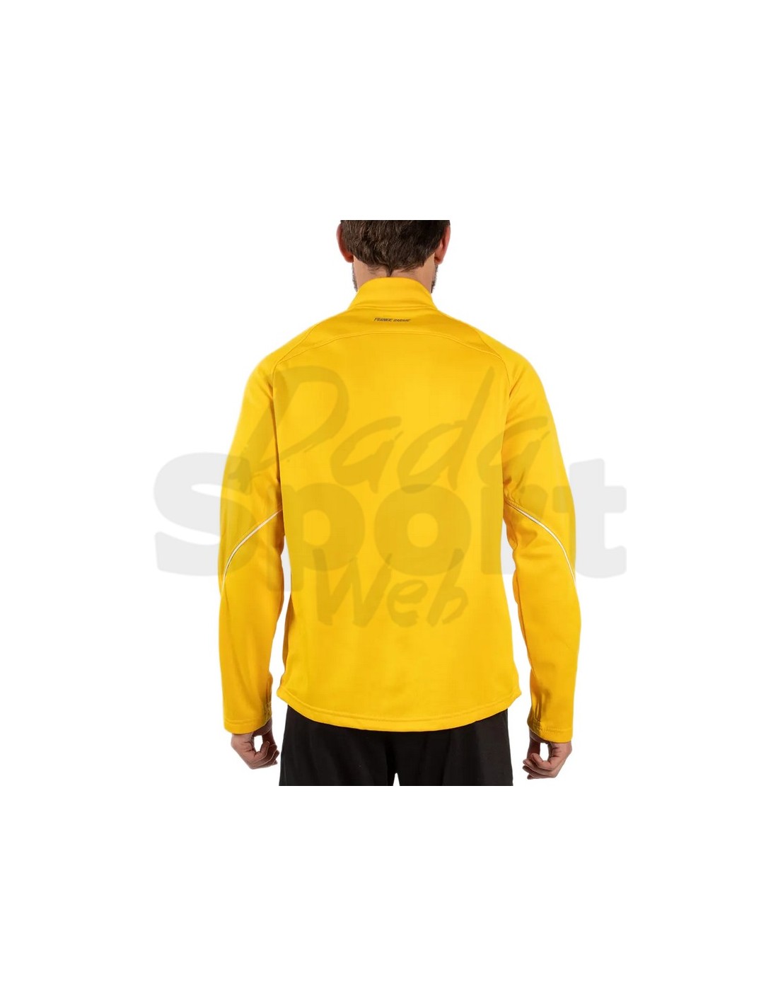 Il collo alto con mezza zip metallica è il cuore funzionale del capo: chiusa protegge dalla temperatura durante il riscaldamento, aperta gestisce la termoregolazione nelle fasi più intense.