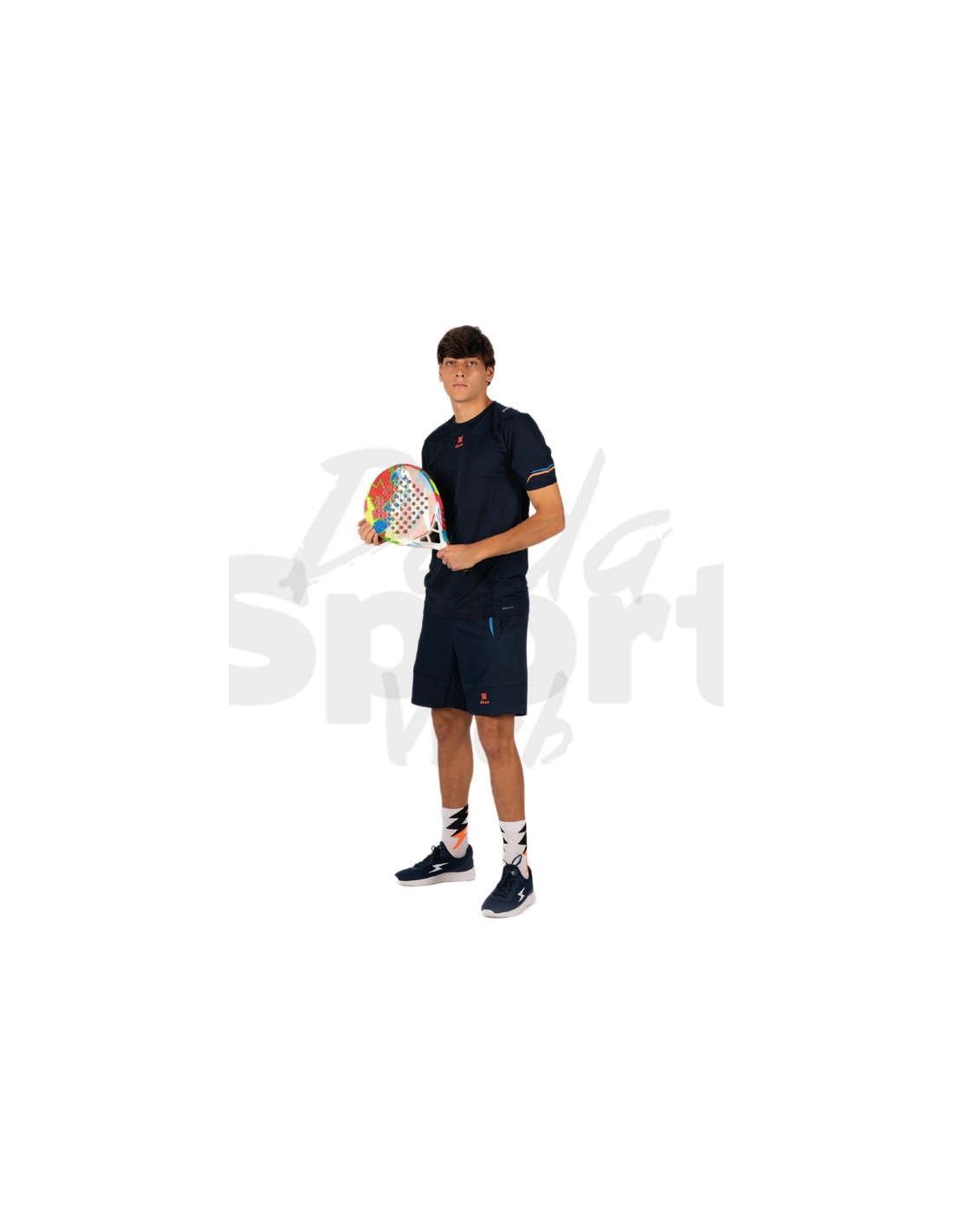 Completo tecnico leggero e traspirante con tecnologia DRYTech. Maglia a manica corta con loghi stampati e pantaloncini con tasche laterali. Ideale per allenamento e attività multisport.