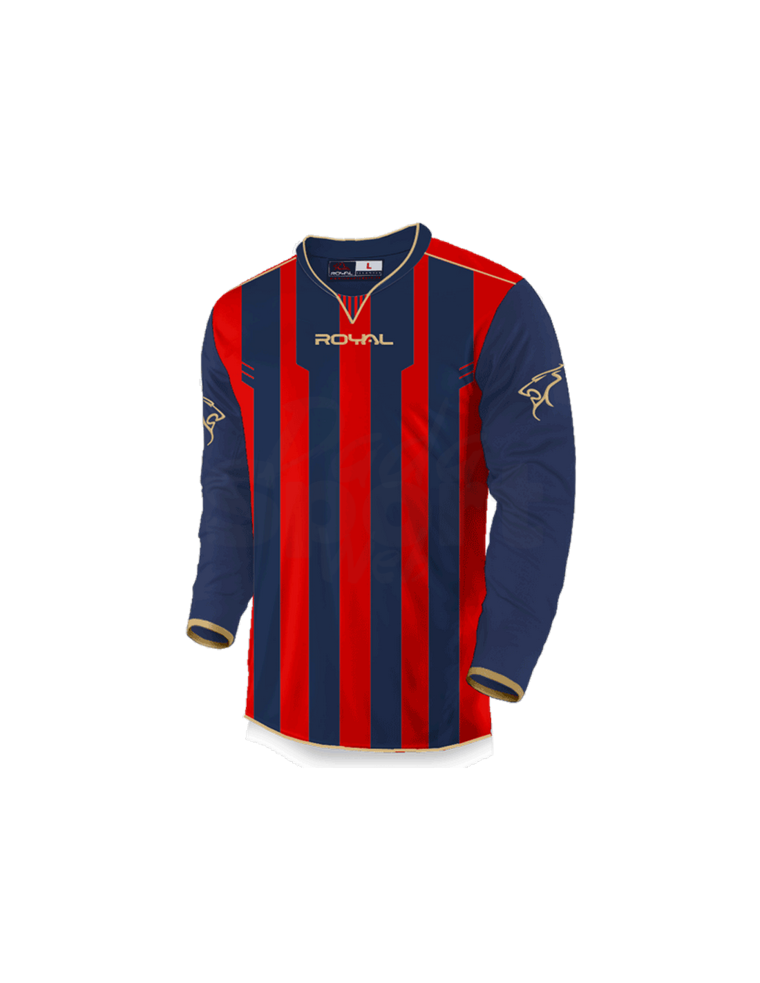 La nuova maglia Royal modello SOVIN è ideale per le gare o l'allenamento di calcio o futsal, ha uno stile unico ed intramontabile con le strisce bicolare nella parte anteriore mentre nella parte posteriore oltre alle righe presenti nel fondo schiena c'è l'apposito spazio a tinta unica per l'applicazione del numero, nome o eventualmente sponsor.