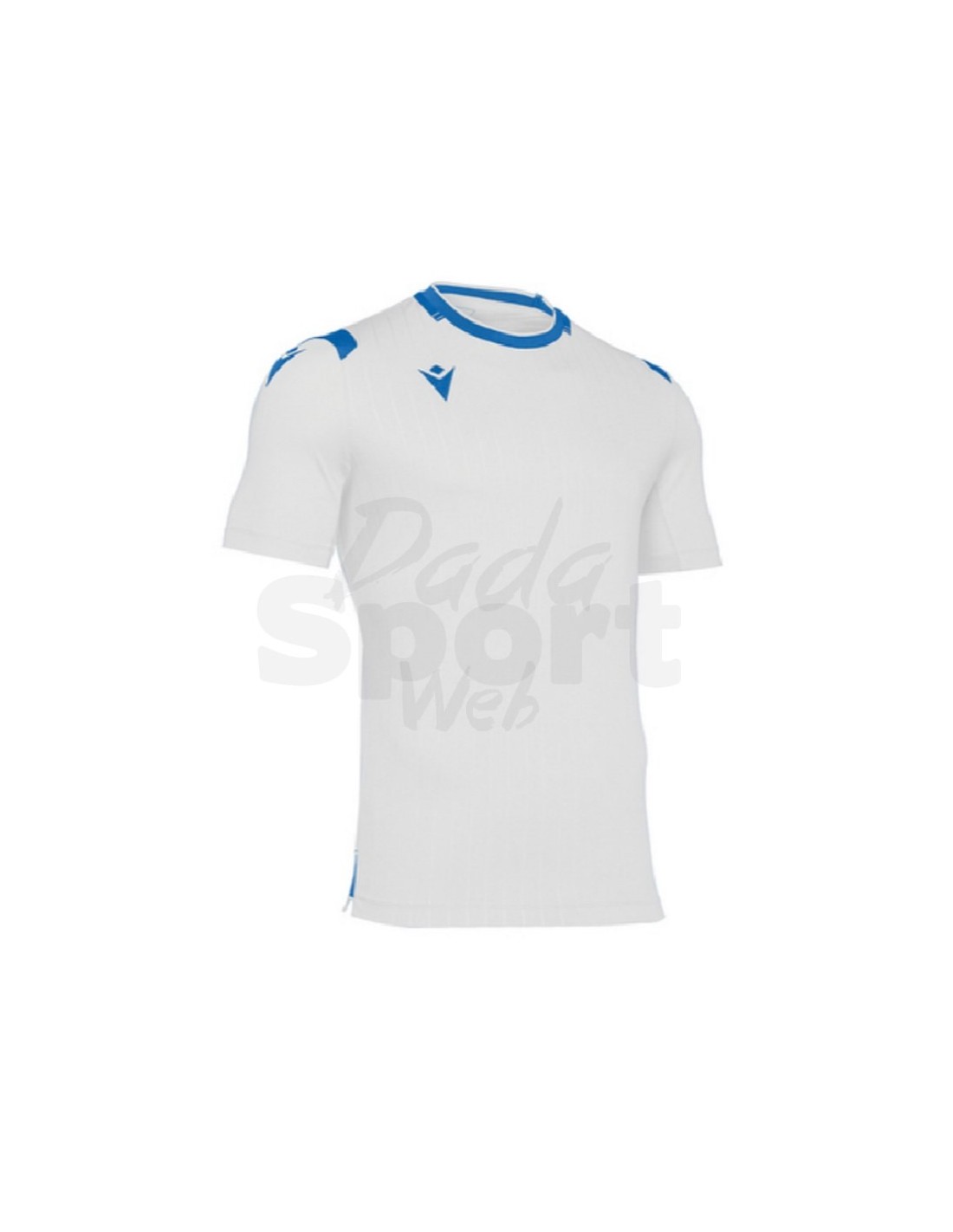 Nuova maglia Macron Alhena ideale da indossare durante le partite di calcio, dal design unico ad effetto gessato tono su tono embossato, girocollo in maglieria, tape elastico sul collo, inserti in mesh sulle spalle, realizzata in tessutoSoftlock + Mesh, perfetto per le maglie da gioco , leggero, morbido e resistente agli strappi, dall'asciugatura rapida.