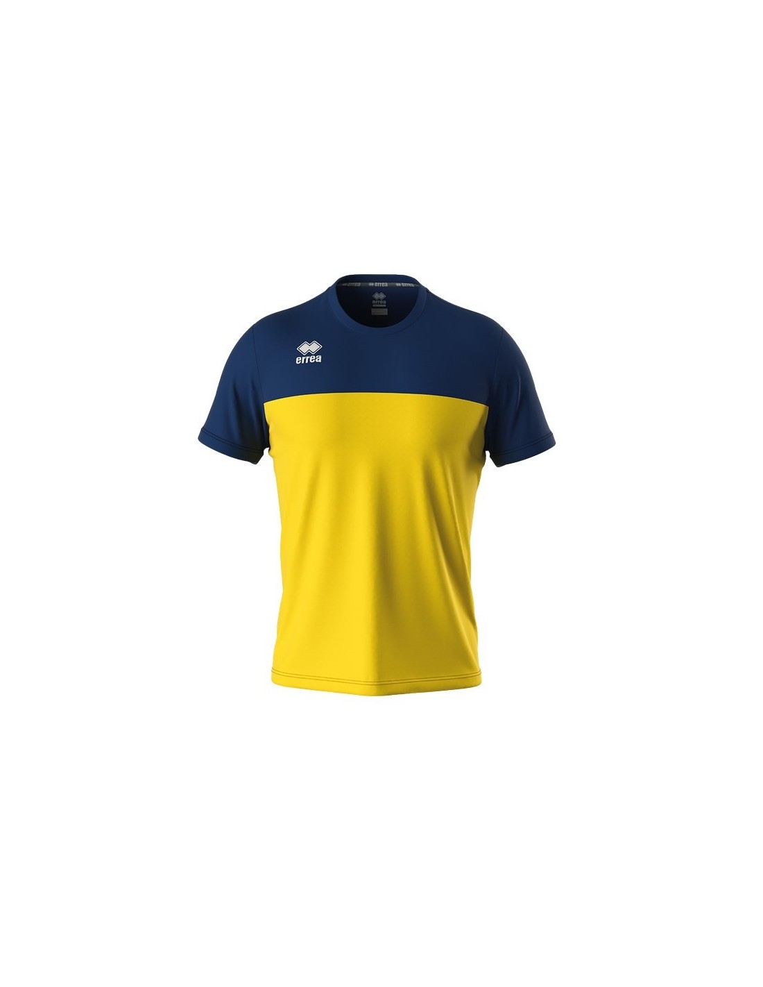 BRANDON è la maglia maschile tecnica Erreà adatta al calcio e pallavolo, bicolore taglia e cuci, manica a giro, girocollo, parasudore elastico interno, manica corta con orlo.