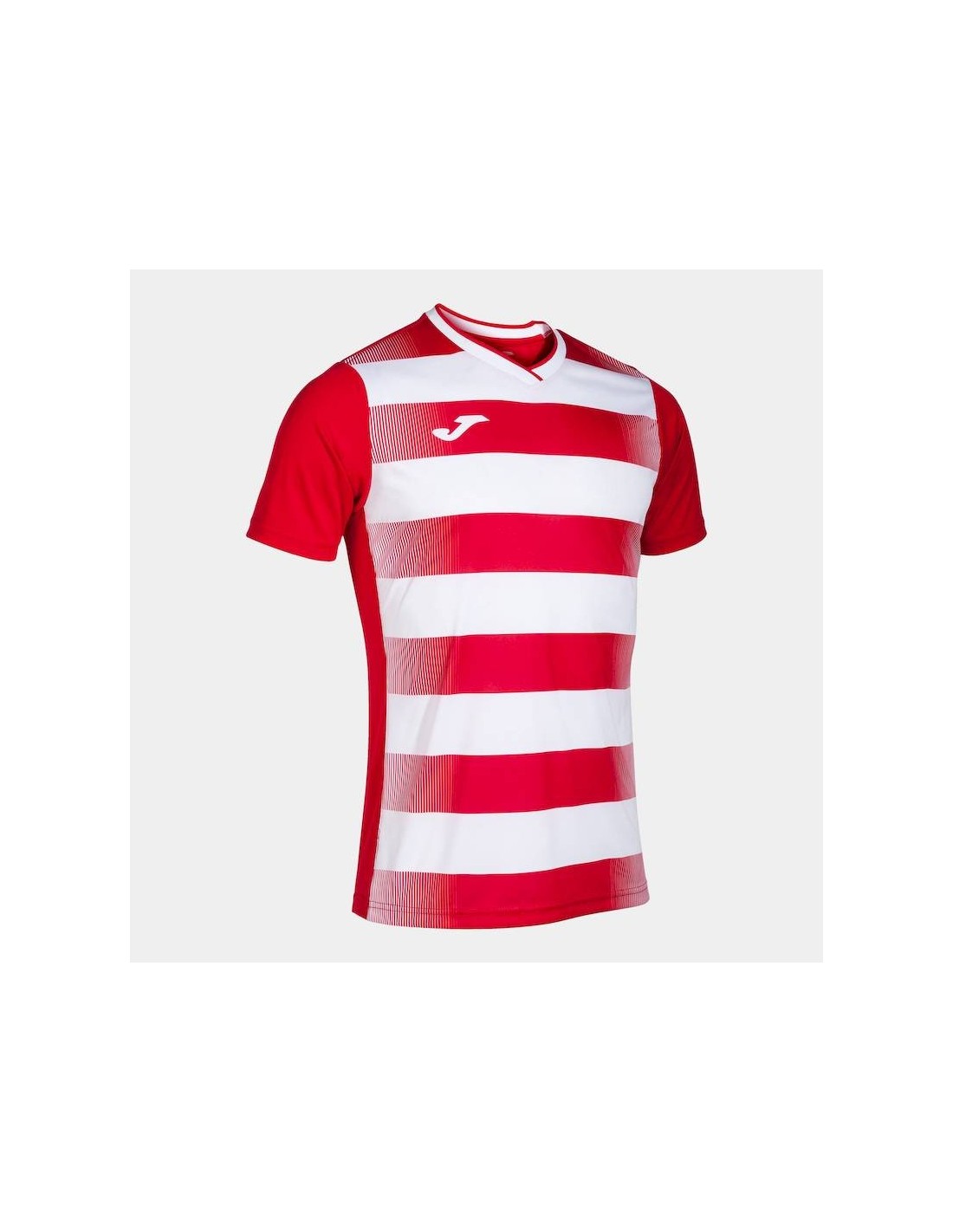 T-shirt con fronte sublimato a righe. Lo scollo a V è realizzato a costine per aumentare la libertà di movimento.