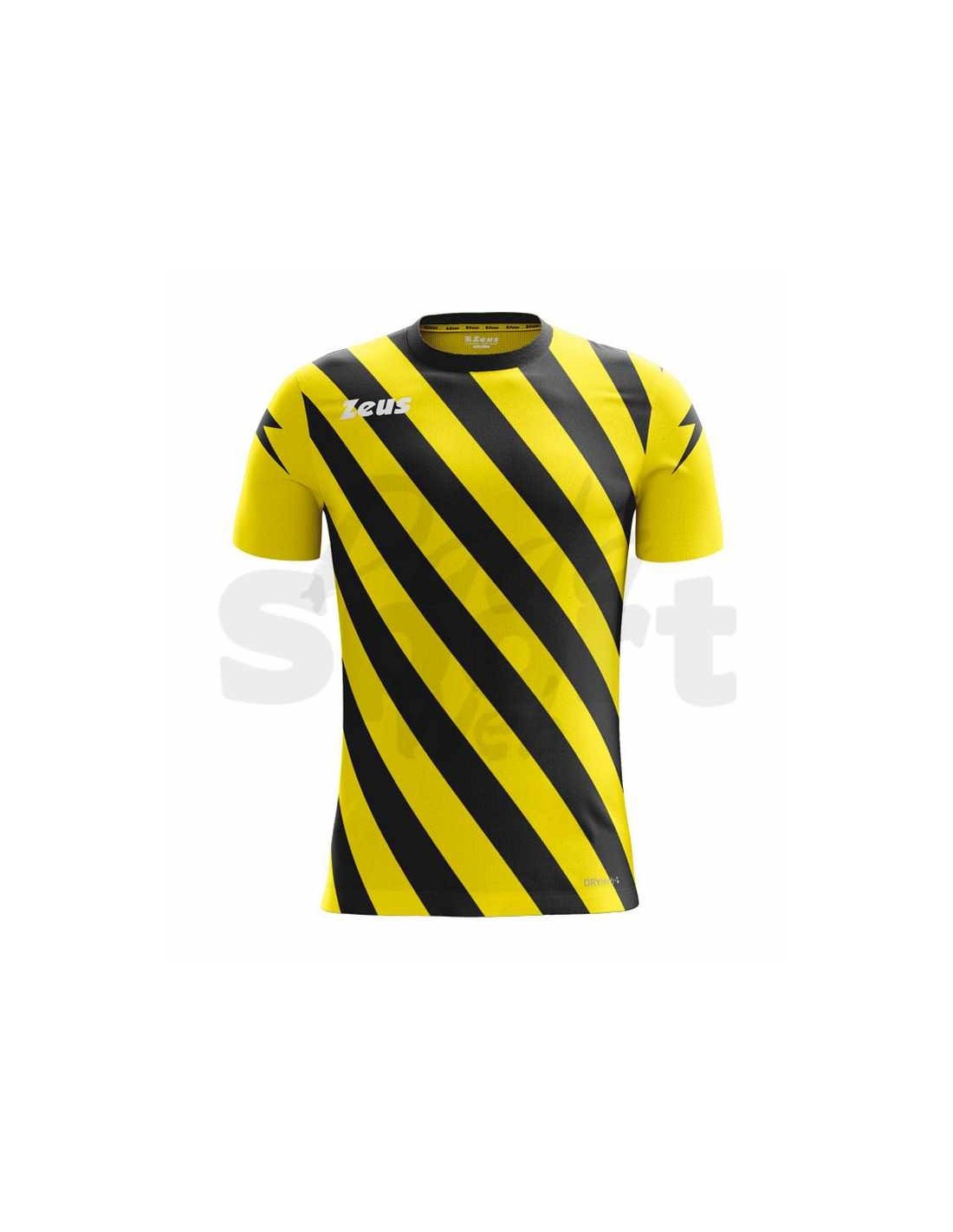Nuova maglia calcio della Zeus modello Zip a bande trasversali bi-colore perfetta in abbinamento ai pantaloncini Mida.