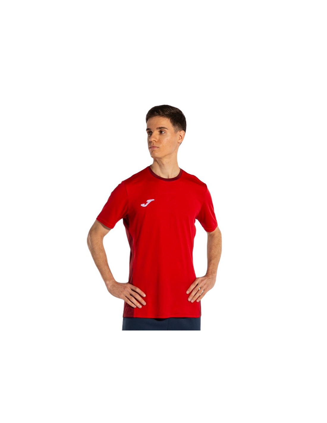 T-shirt ideale per l'allenamento o le competizioni sportive, leggera a maniche corte con retro e fianchi realizzati in tessuto elastico Micro mesh per massimizzare la traspirabilità e mantenere così il corpo asciutto durante l'attività sportiva, logo J sul petto e JOMA stampato sul retro.