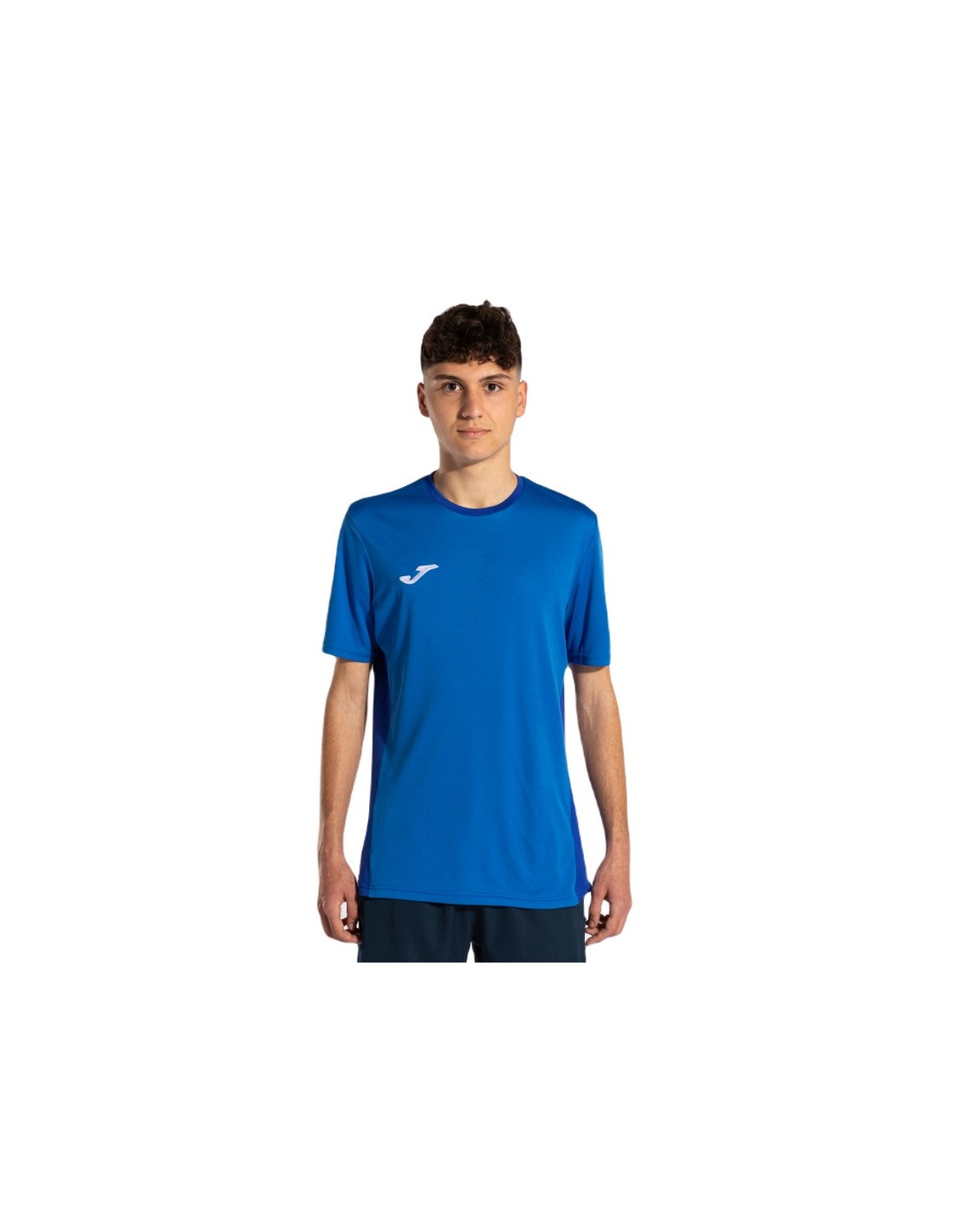 T-shirt ideale per l'allenamento o le competizioni sportive, leggera a maniche corte con retro e fianchi realizzati in tessuto elastico Micro mesh per massimizzare la traspirabilità e mantenere così il corpo asciutto durante l'attività sportiva, logo J sul petto e JOMA stampato sul retro.