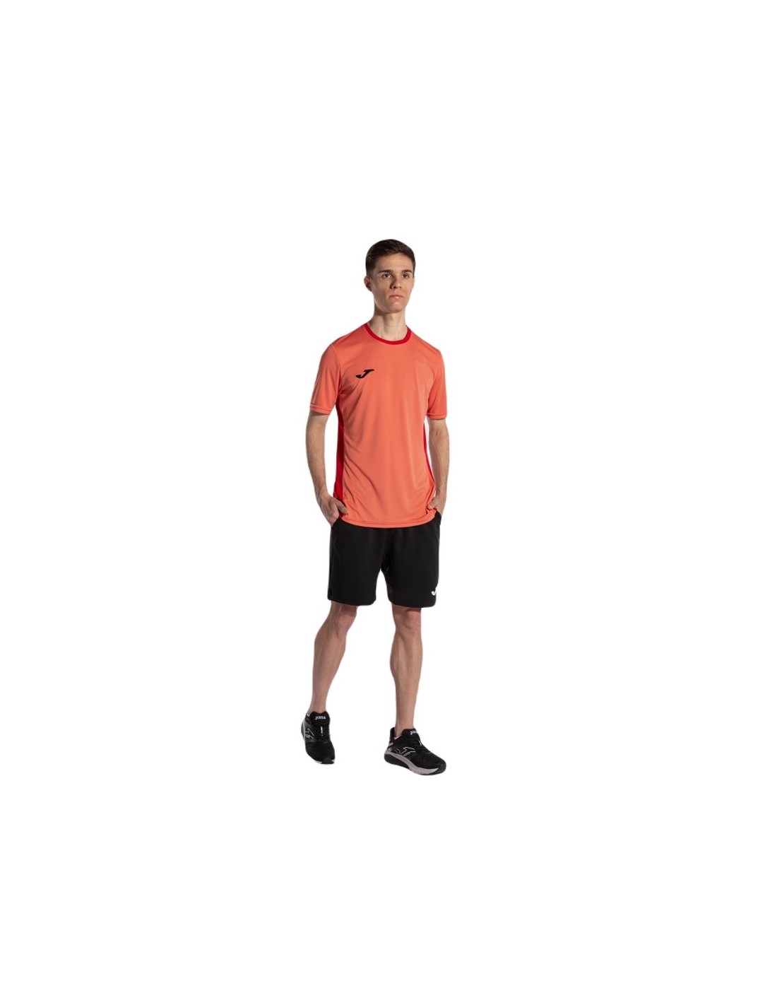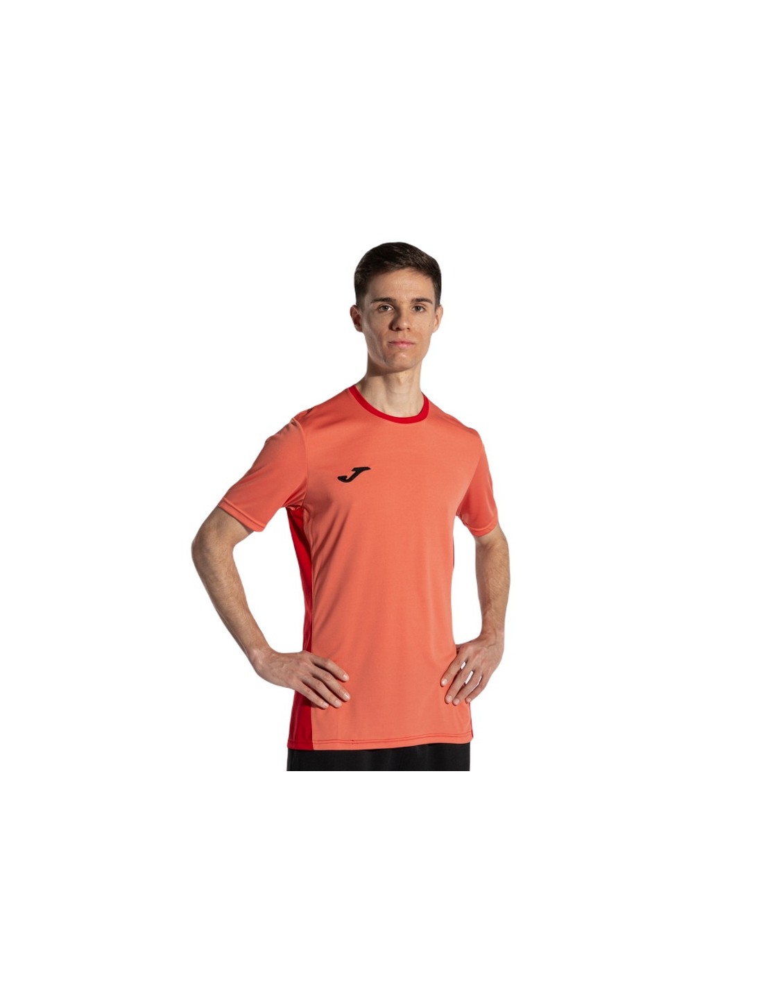 T-shirt ideale per l'allenamento o le competizioni sportive, leggera a maniche corte con retro e fianchi realizzati in tessuto elastico Micro mesh per massimizzare la traspirabilità e mantenere così il corpo asciutto durante l'attività sportiva, logo J sul petto e JOMA stampato sul retro.