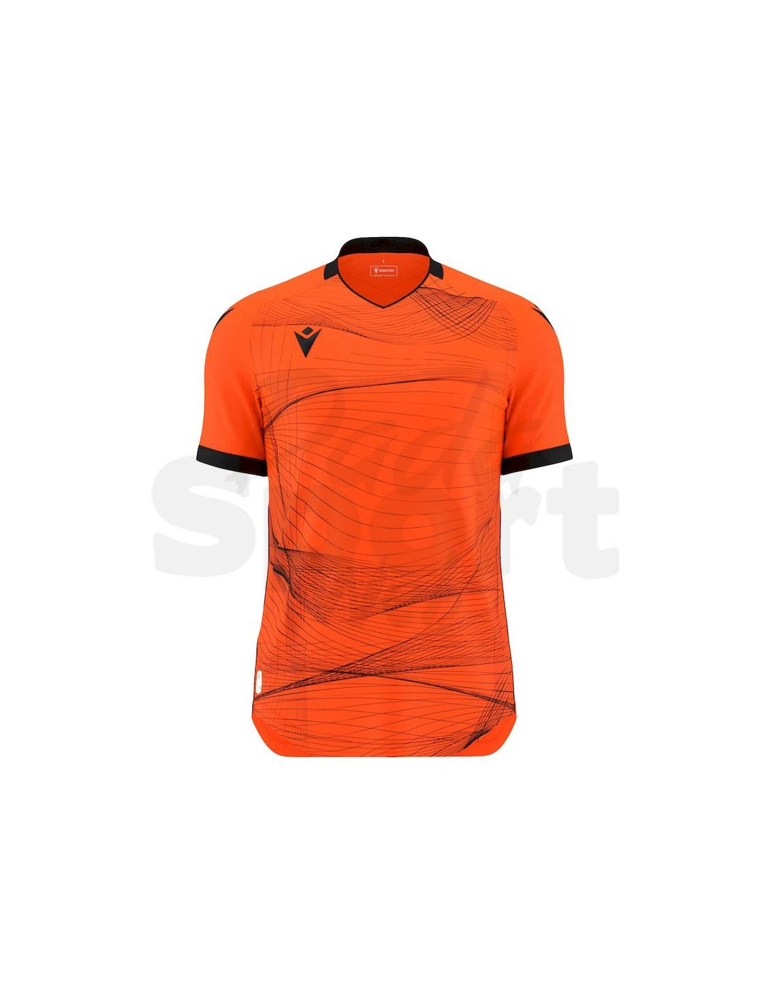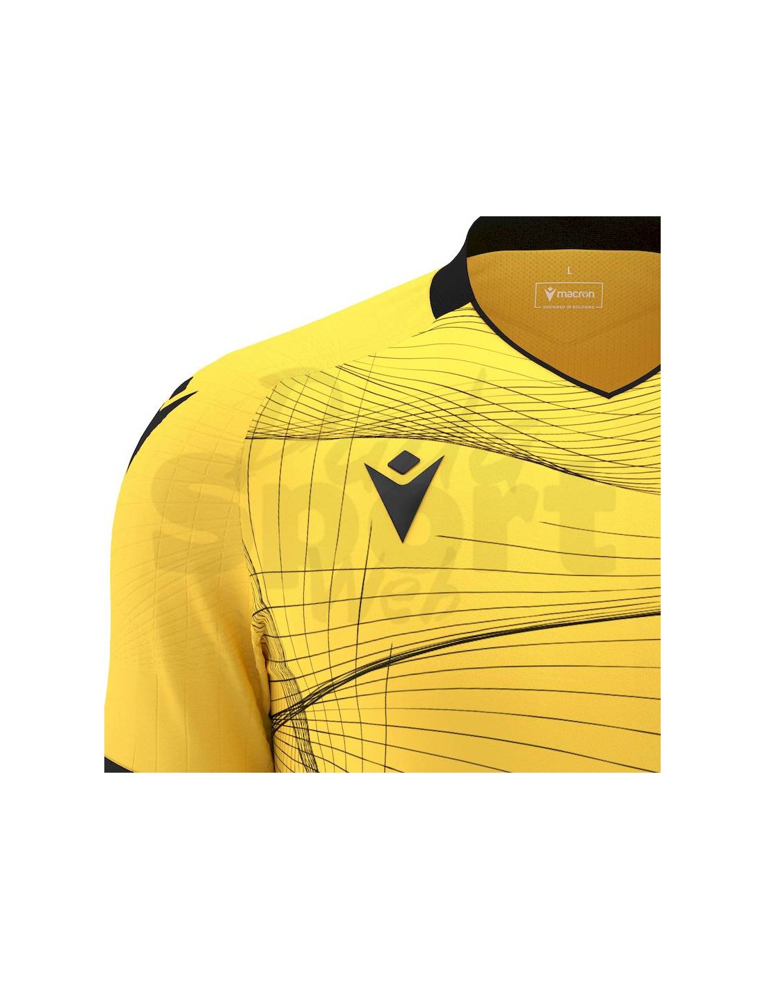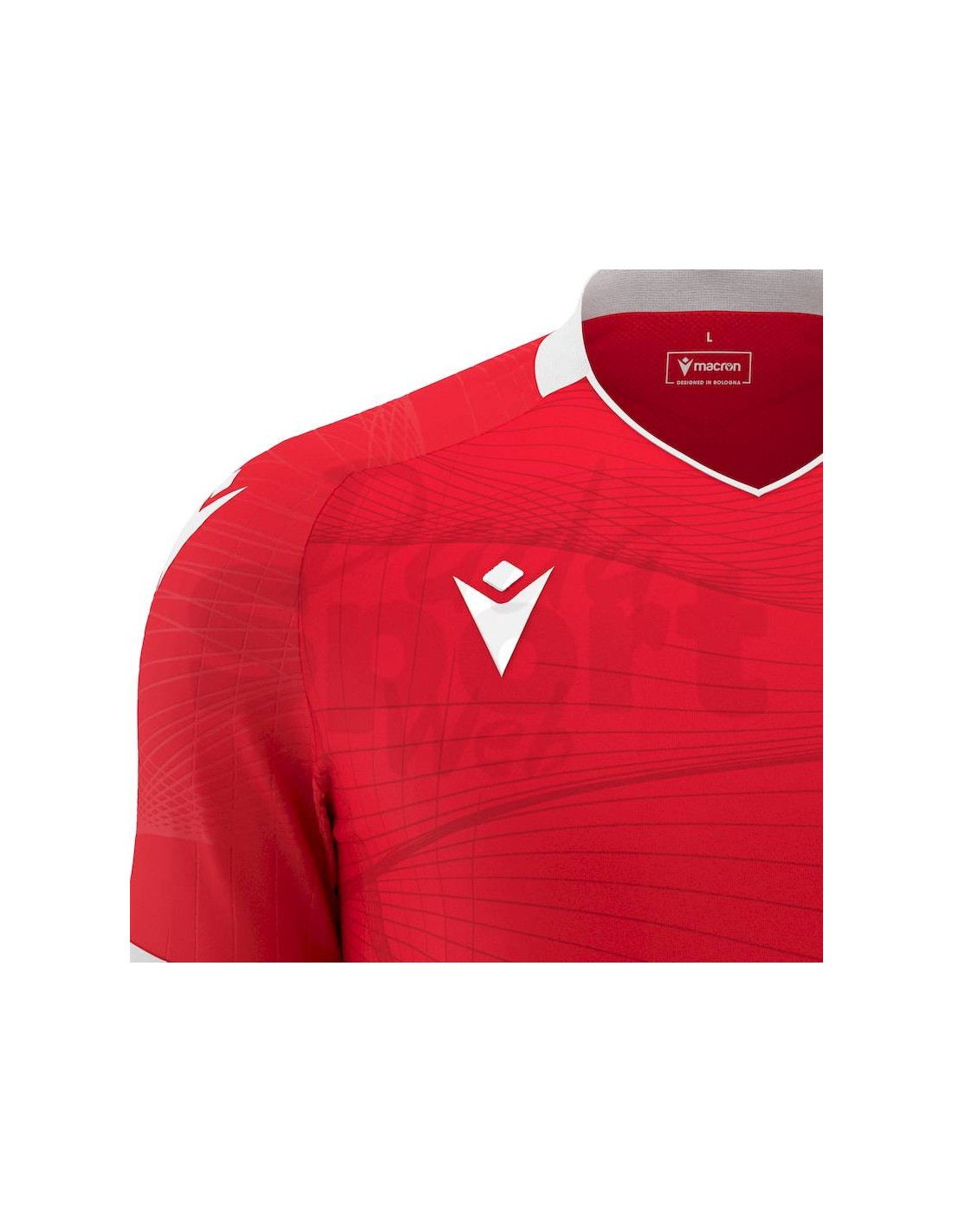 Il collo è a "V" in maglieria con piping frontale. La maglia si distingue per una particolare texture con effetto optical embossata sulle maniche e sublimata sul fronte maglia.