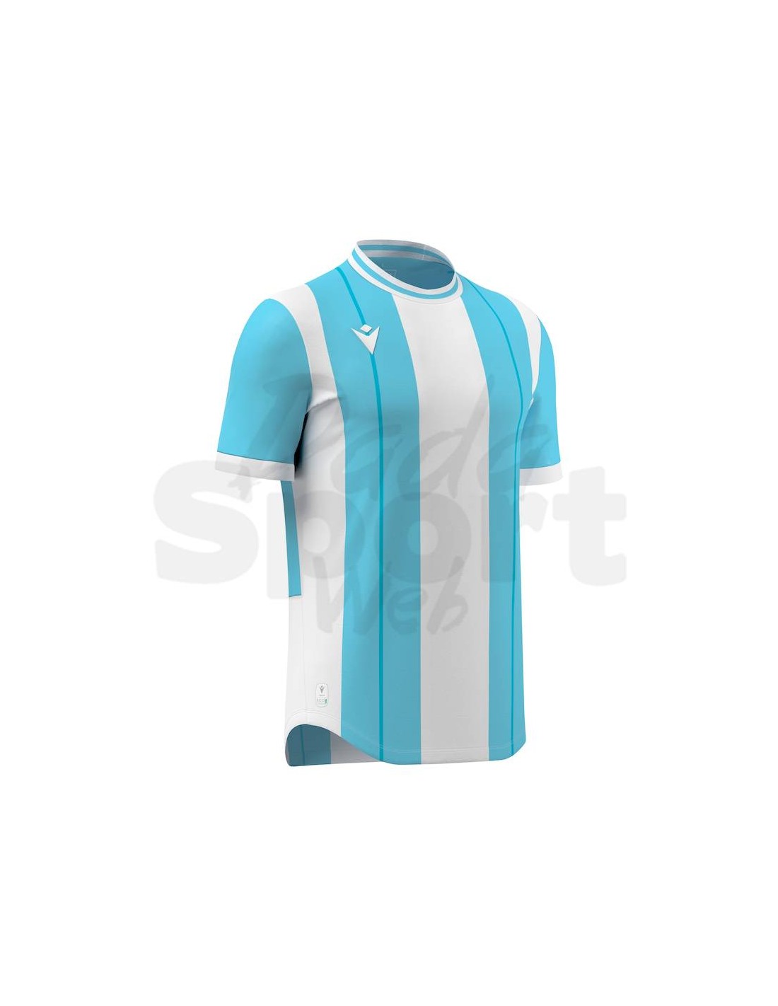 Nuova maglia Macron da gara a 5 righe verticali realizzata interamente in Eco Fabric, 100% da PET riciclato.