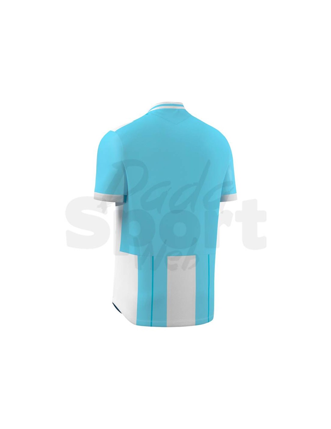Il collo a girocollo è in maglieria. Sul retro le righe sono interrotte per consentire la stampa di nomi e numeri garantendone la corretta visibilità.