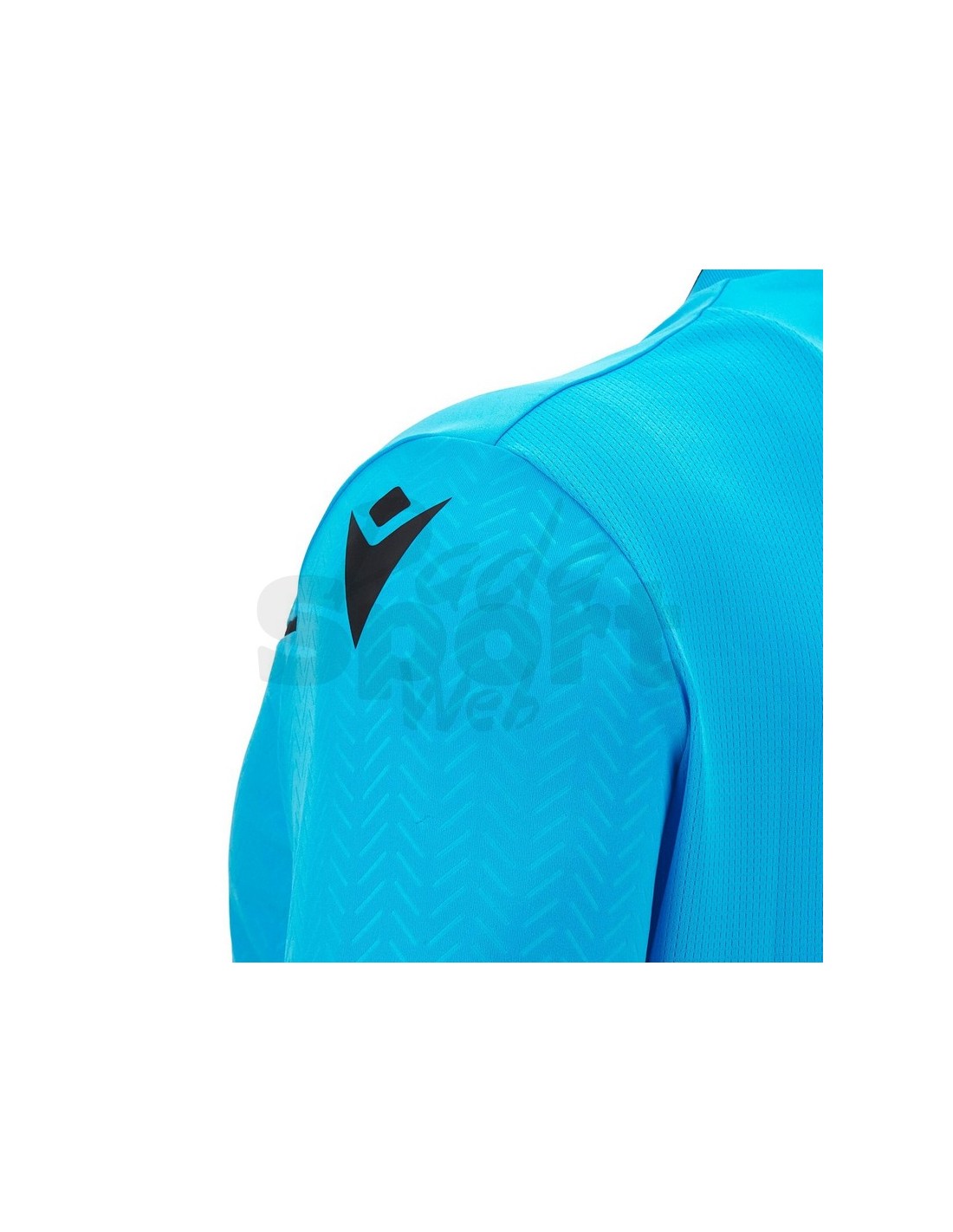 Il logo Macron Hero è in silicone, il fronte e le maniche sono caratterizzati da una texture embossata e sono presenti due tasche porta cartellini dal taglio ergonomico e chiusura con velcro, disponibile in 4 varianti colore.