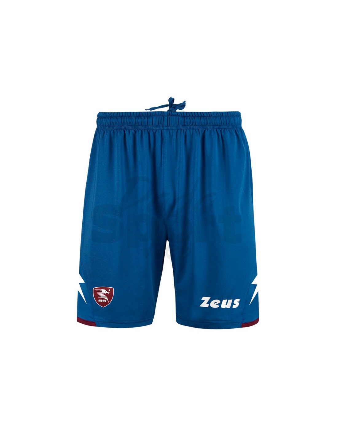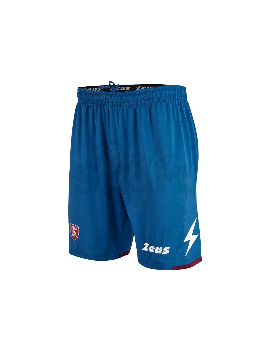 Pantaloncino con loghi Zeus siliconati, club crest Salernitana in silicone texturizzato ed inserti laterali di colore granata.