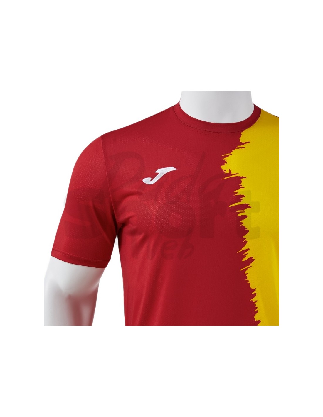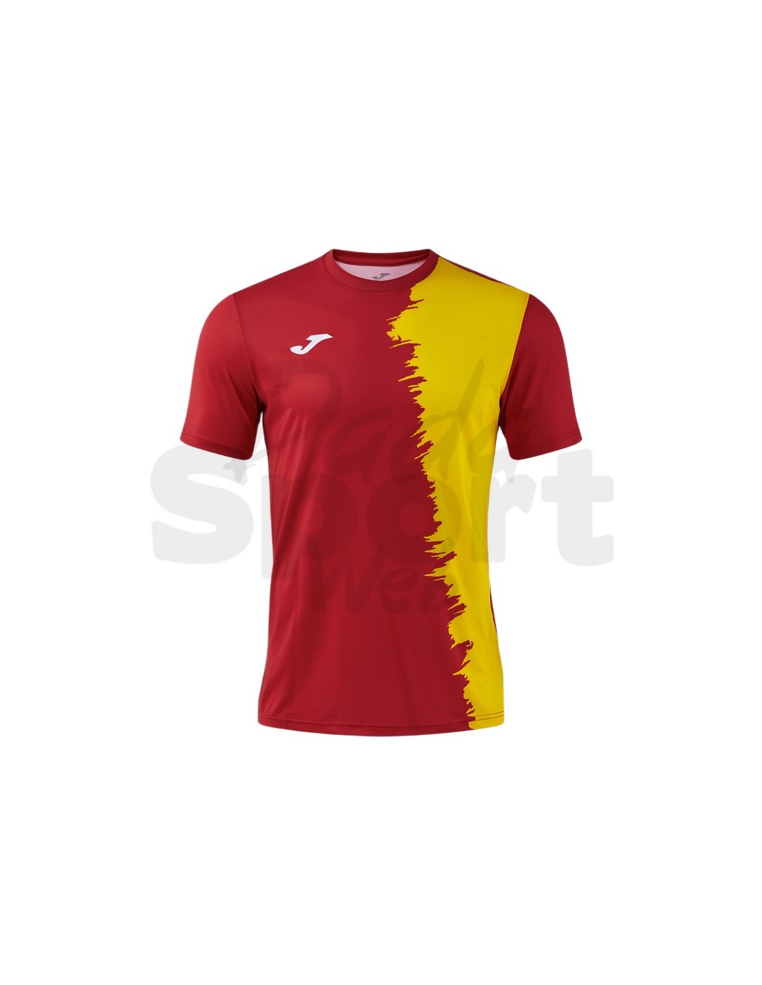 Maglietta da calcio a maniche corte da uomo, realizzata in tessuto tecnico leggero con finitura Jacquard per garantire massima traspirabilità, resistenza e comfort in campo. Design moderno con girocollo e logo Joma ricamato. Vestibilità semiaderente.