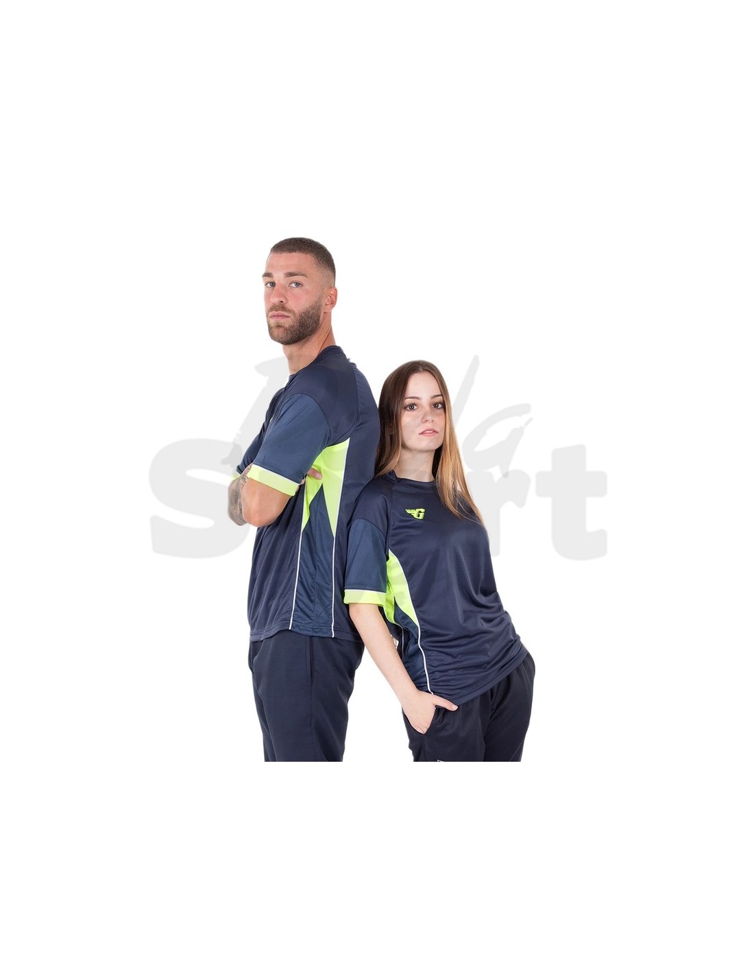 Il design blu/giallo con piping a contrasto dona un look dinamico e riconoscibile, perfetto per squadre e società sportive.