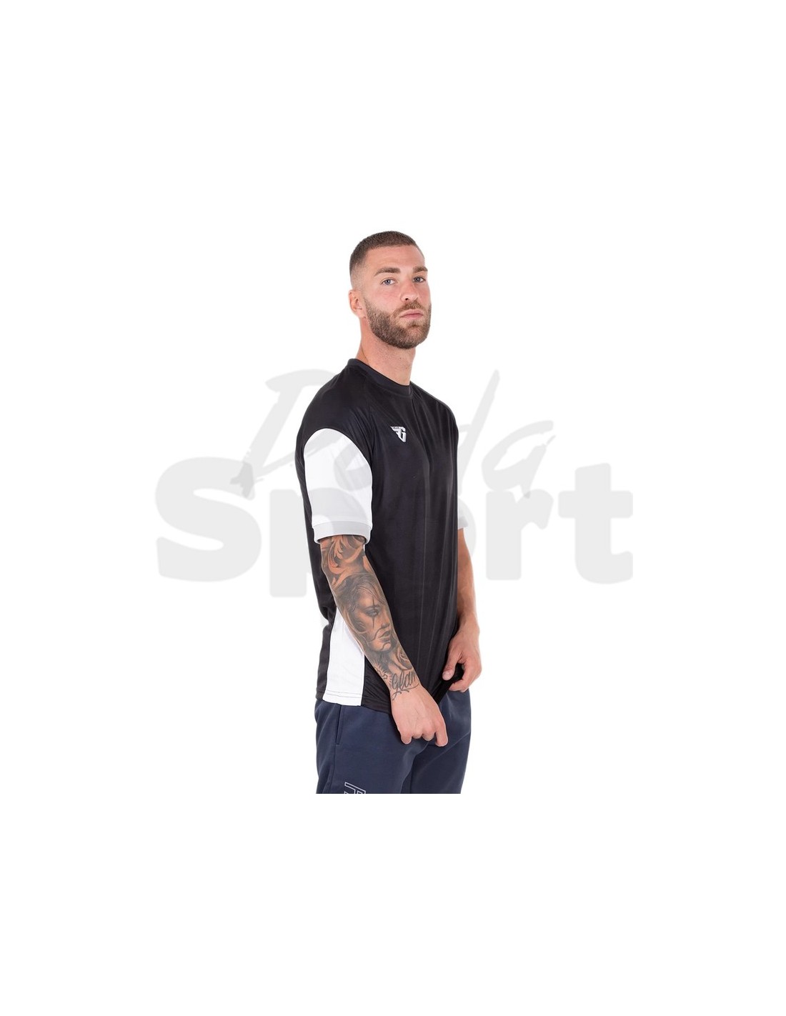 Realizzata in 100% poliestere, tessuto tecnico Interlock + Mesh, combina: