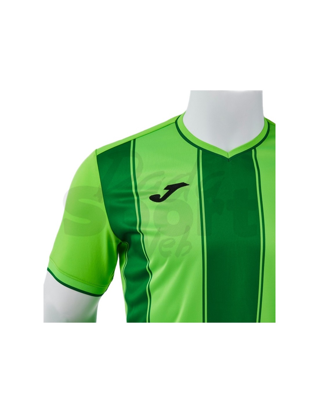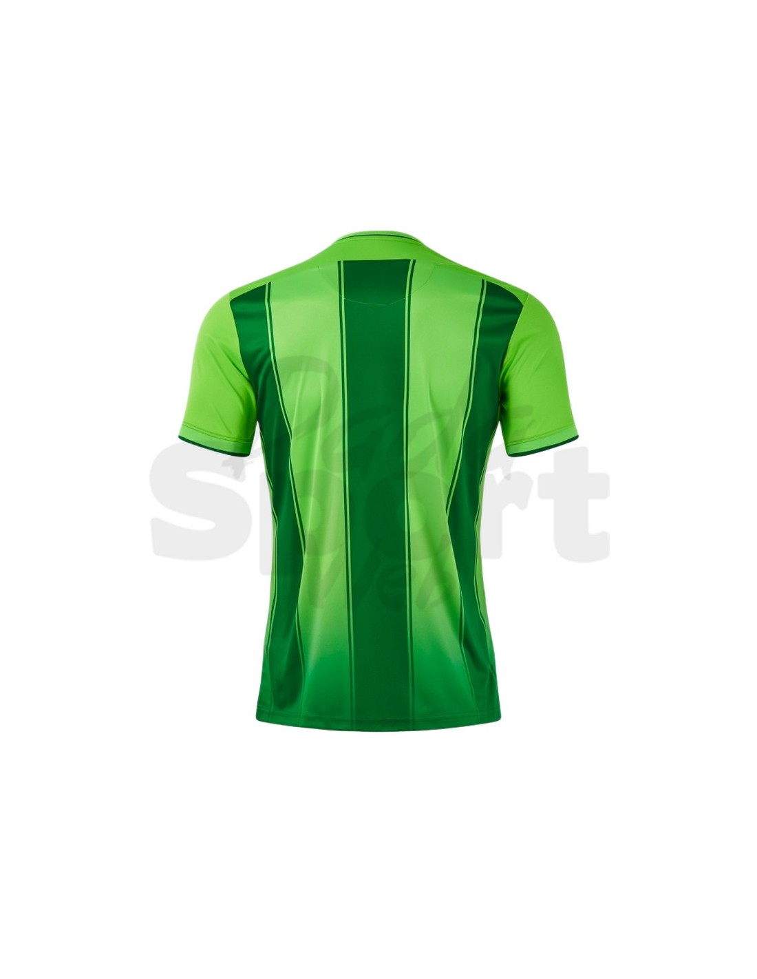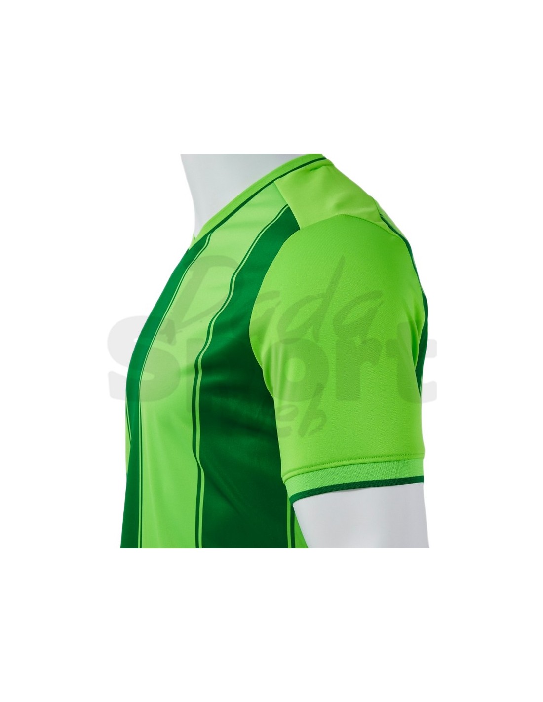 La Joma Tiger VIII è la maglia da calcio che porta in campo una presenza visiva immediata: il pattern a fasce verticali verde su fondo verde fluo, stampato in sublimazione, è il segno grafico che identifica da decenni la linea Tiger di Joma — riconoscibile in campo a distanza e progettato per fare della divisa un elemento di identità della squadra.