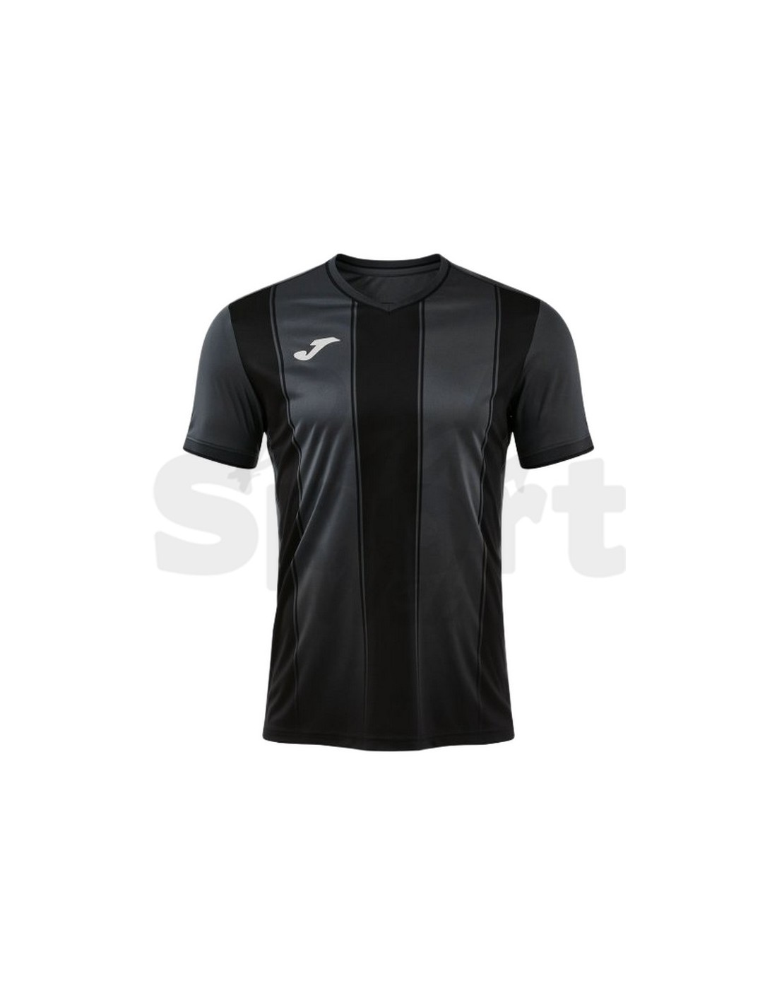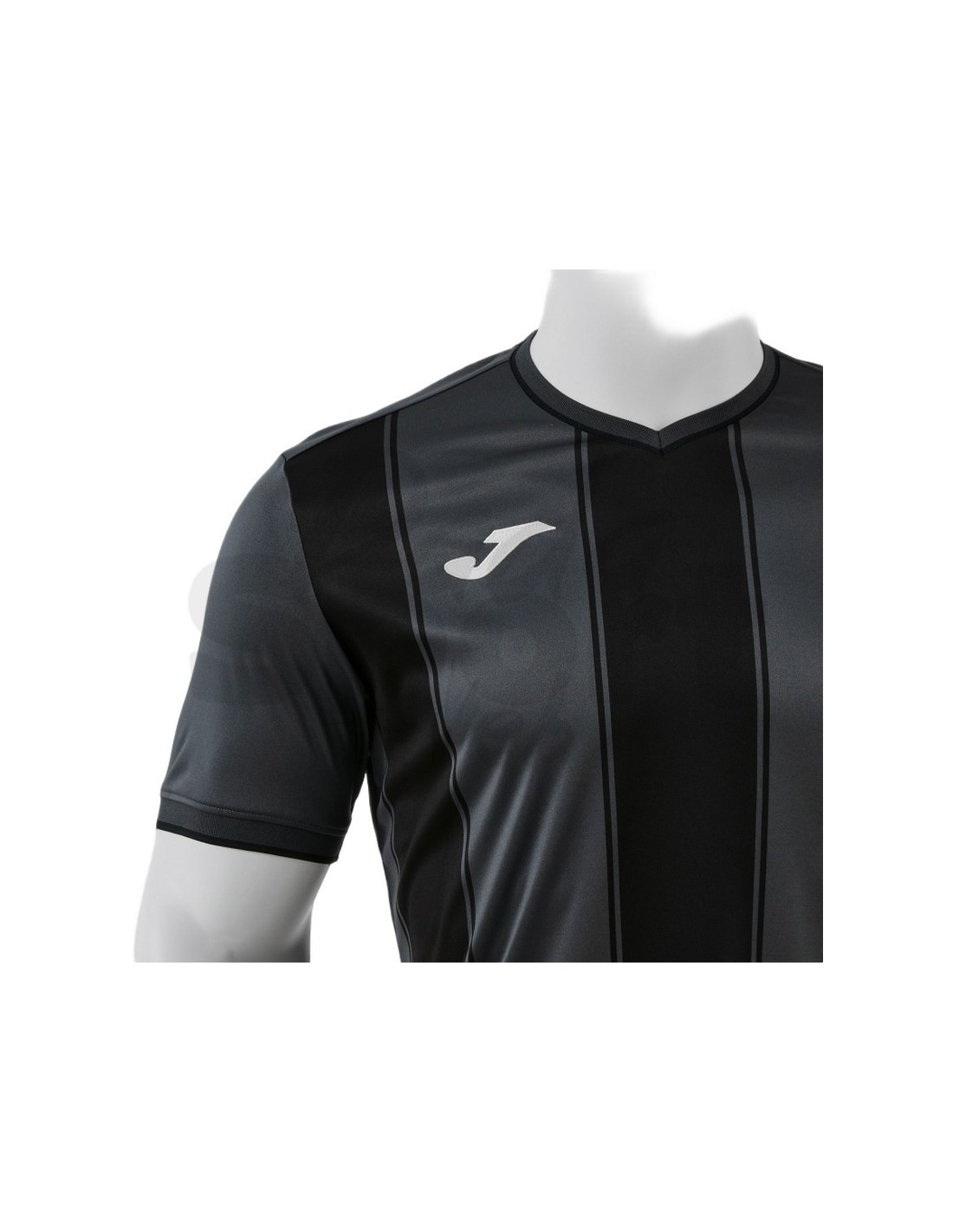 La Joma Tiger VIII è la maglia da calcio che porta in campo una presenza visiva immediata: il pattern a fasce verticali nero su fondo antracite, stampato in sublimazione, è il segno grafico che identifica da decenni la linea Tiger di Joma — riconoscibile in campo a distanza e progettato per fare della divisa un elemento di identità della squadra.