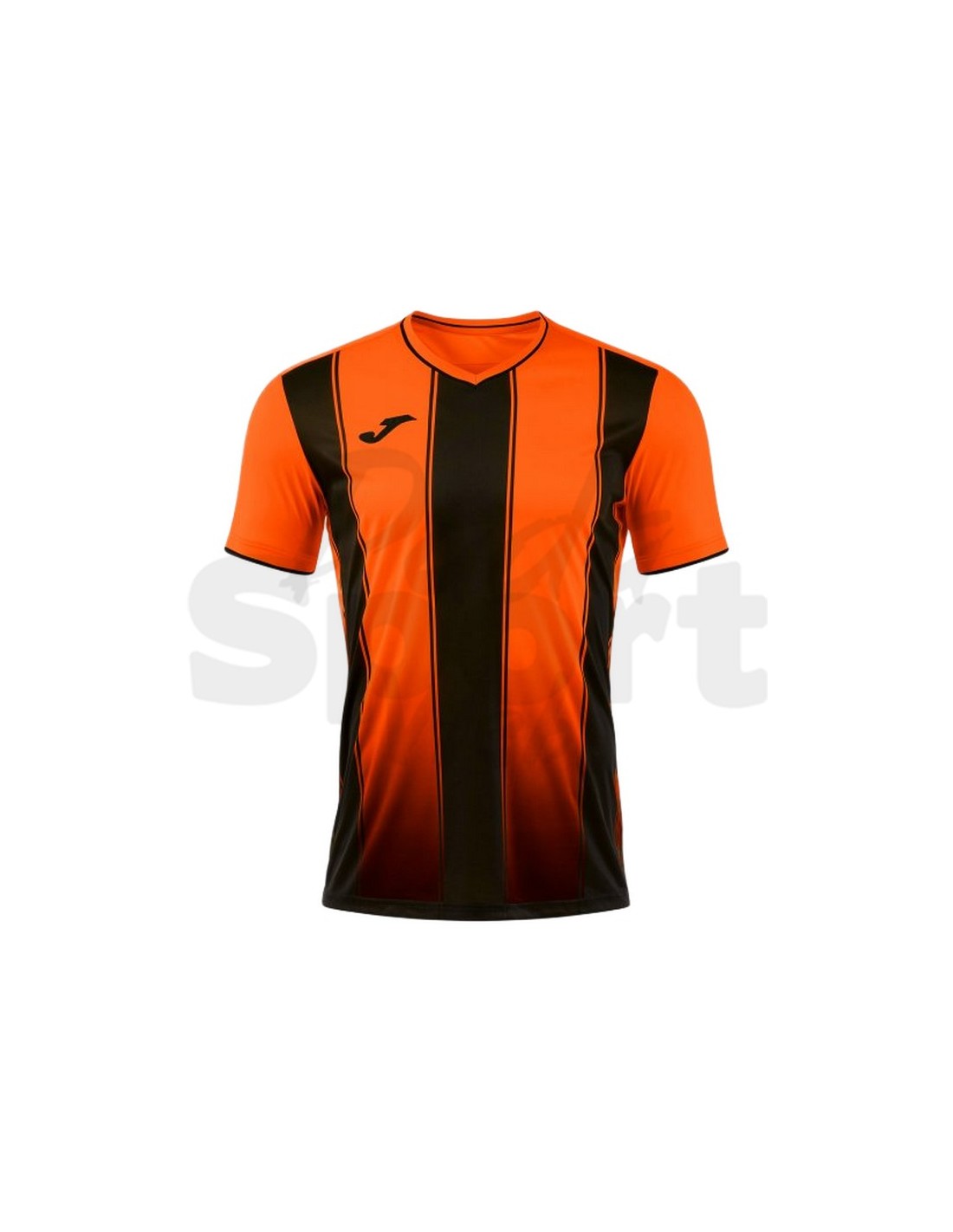 La Joma Tiger VIII è la maglia da calcio che porta in campo una presenza visiva immediata: il pattern a fasce verticali nere su fondo arancio, stampato in sublimazione, è il segno grafico che identifica da decenni la linea Tiger di Joma — riconoscibile in campo a distanza e progettato per fare della divisa un elemento di identità della squadra.