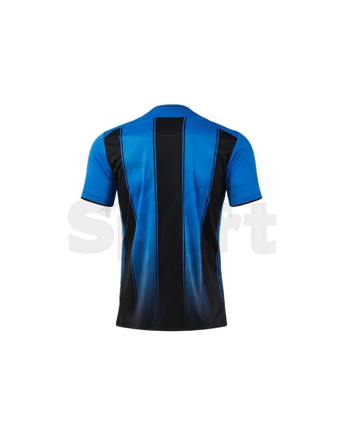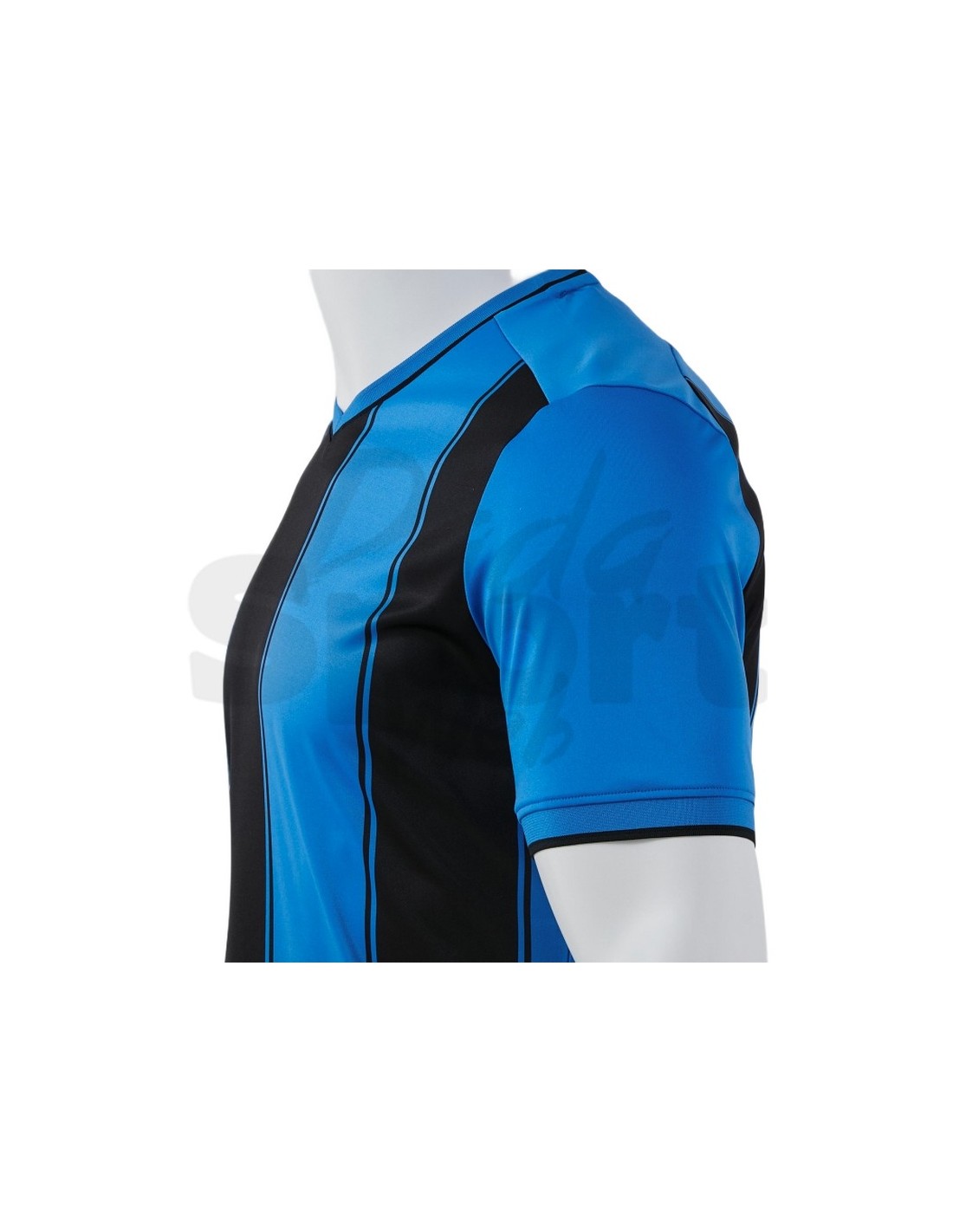 La Joma Tiger VIII è la maglia da calcio che porta in campo una presenza visiva immediata: il pattern a fasce verticali nere su fondo azzurro, stampato in sublimazione, è il segno grafico che identifica da decenni la linea Tiger di Joma — riconoscibile in campo a distanza e progettato per fare della divisa un elemento di identità della squadra.