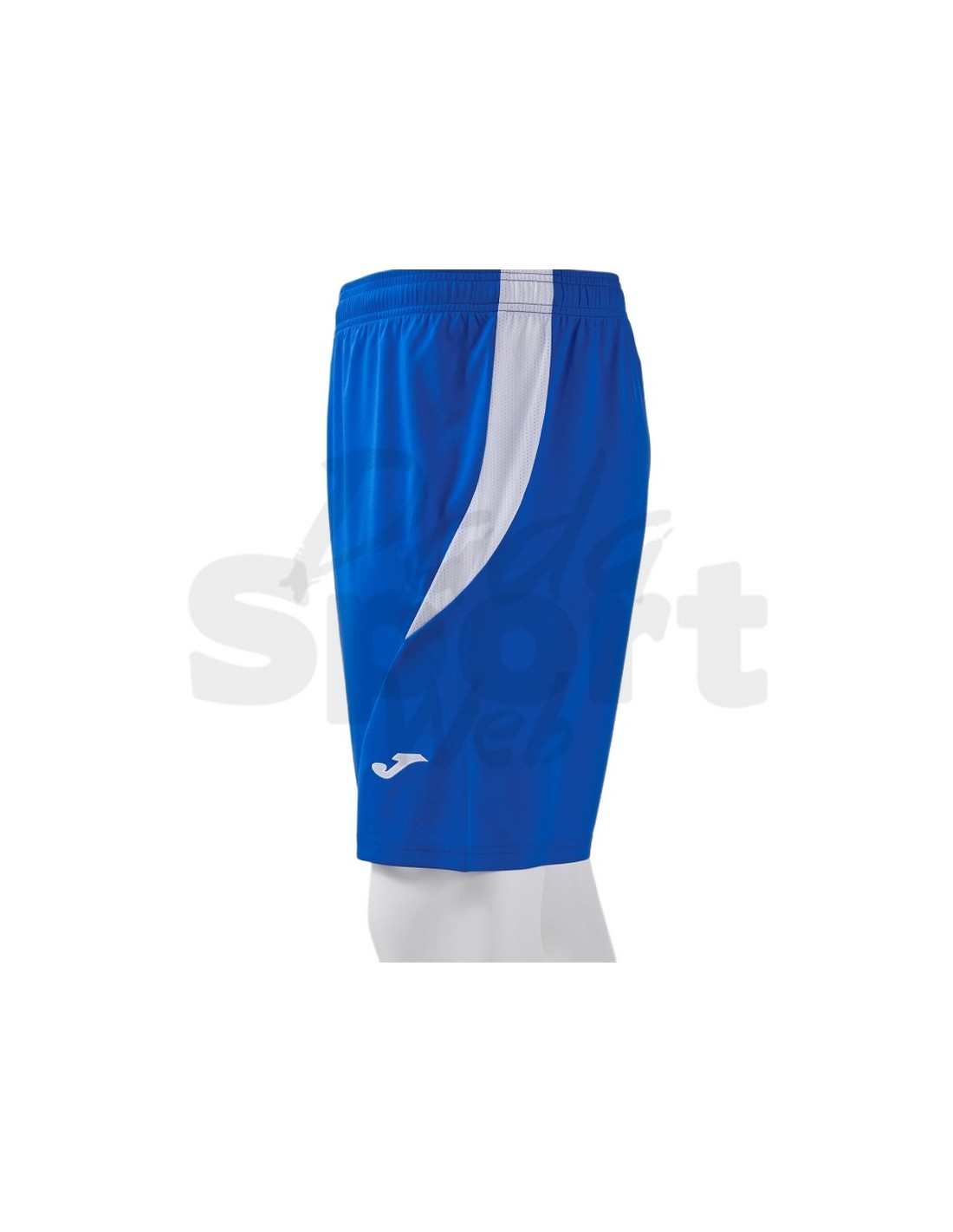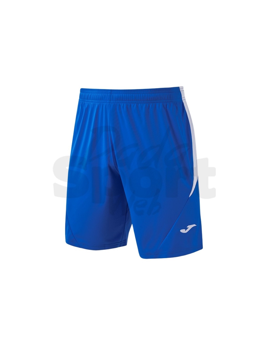 Short Tokio II Joma azzurro bianco da uomo, ideale per calcio e multisport. Tessuto leggero e traspirante, vita elasticizzata con cordino interno e vestibilità standard. Senza tasche, logo ricamato e pannelli in tessuto elasticizzato.